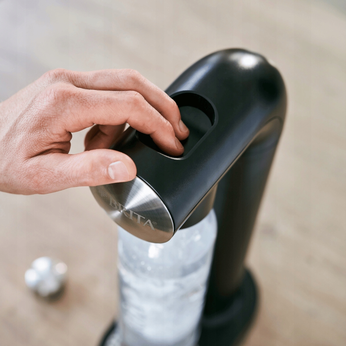 Тепер ви можете в будь-який час швидко й недорого «запухирити» смачну питну воду одним натисканням кнопки. Для цього налийте відфільтровану воду BRITA або водопровідну воду в пляшку BRITA PET, що входить до комплекту, і закрутіть її в карбонатор.