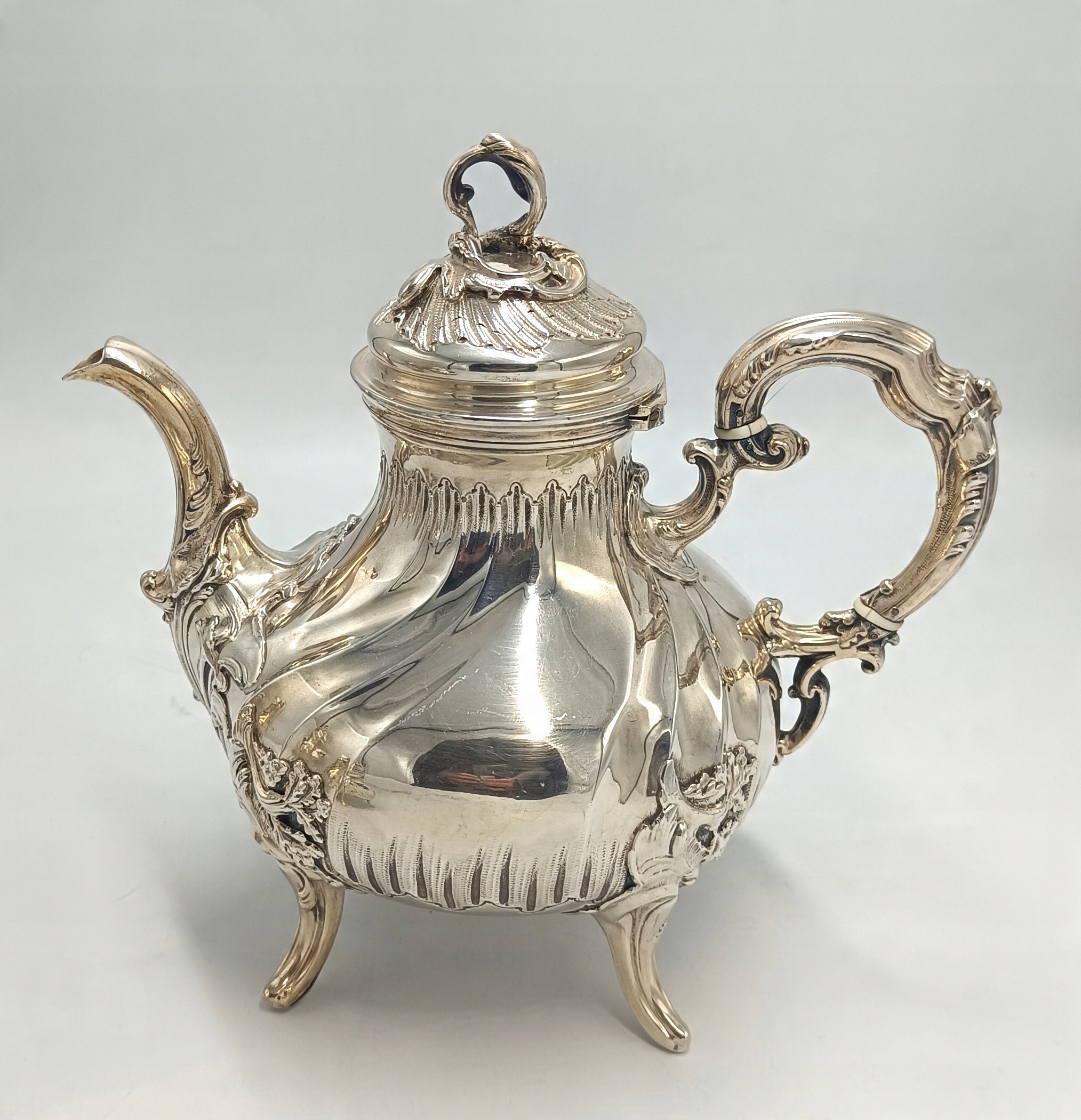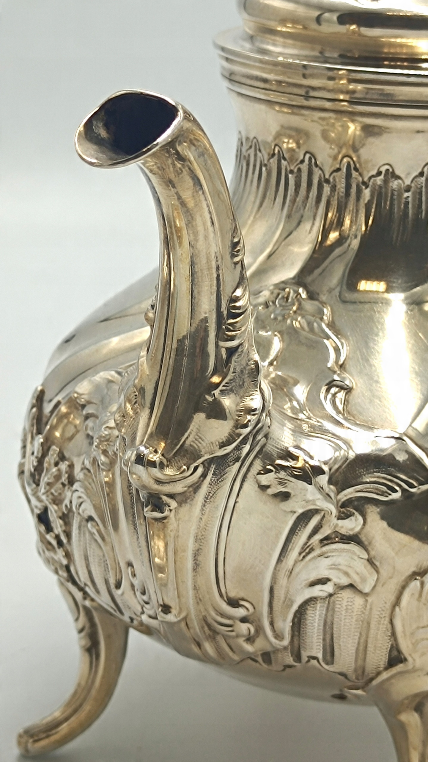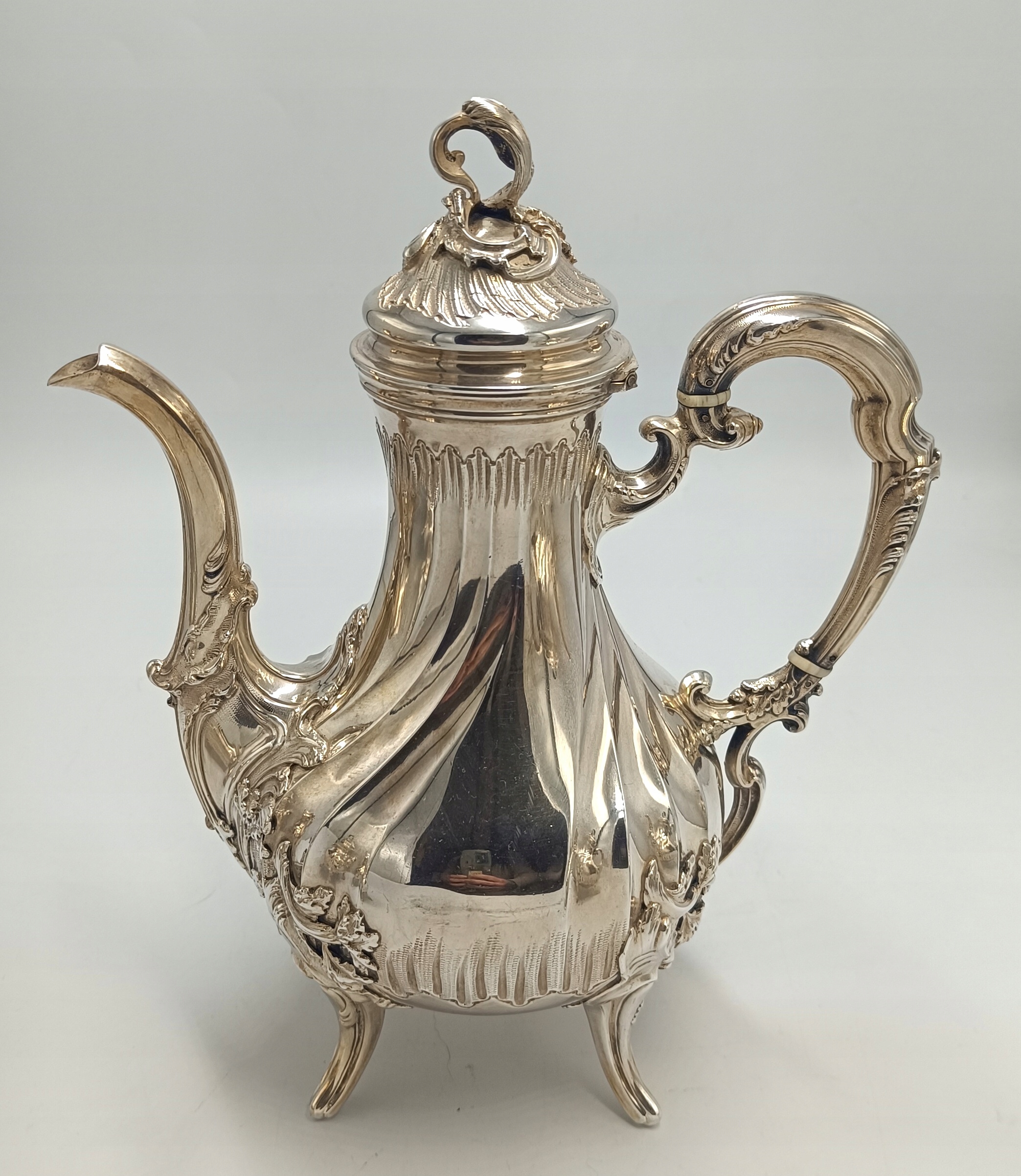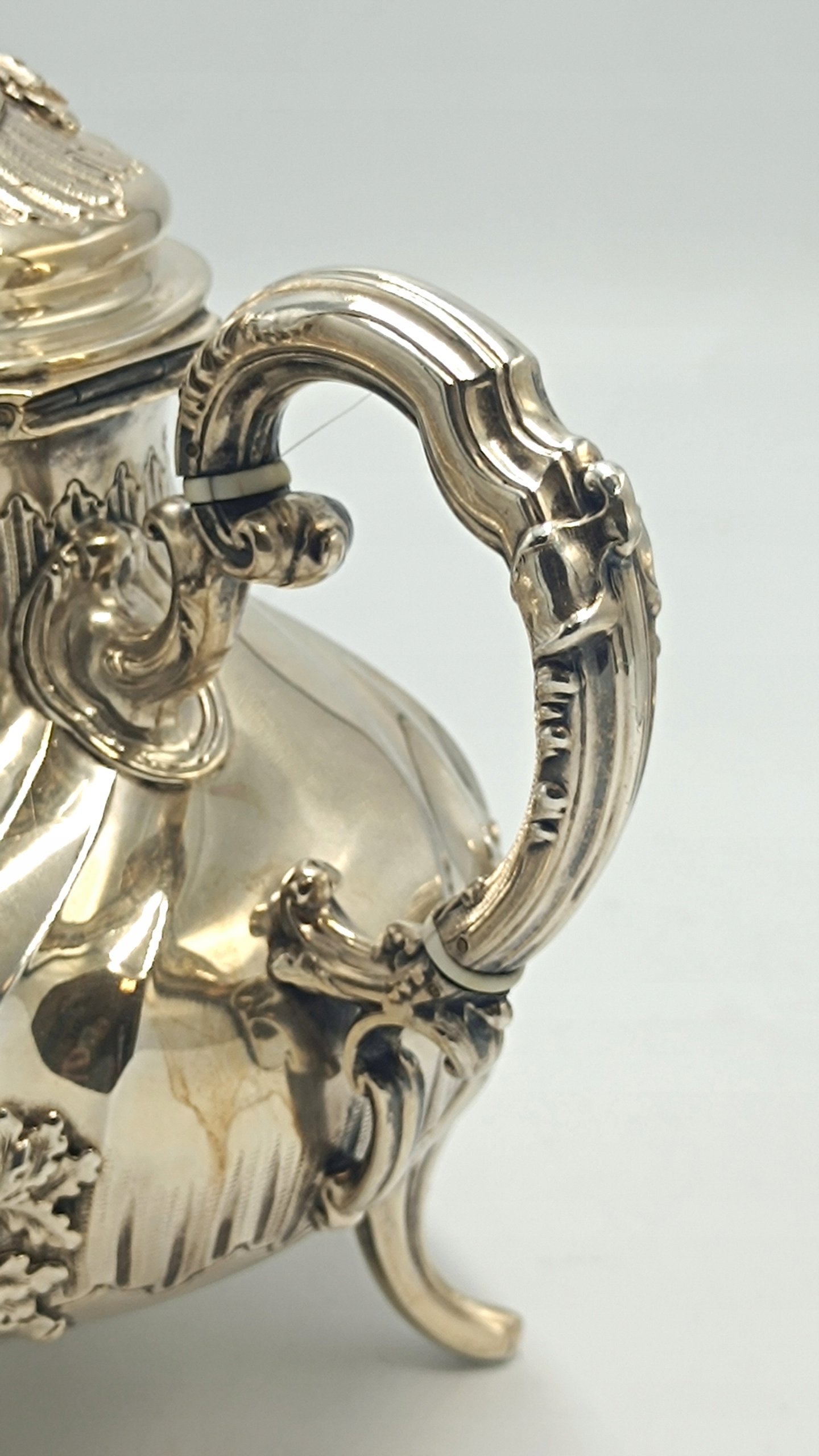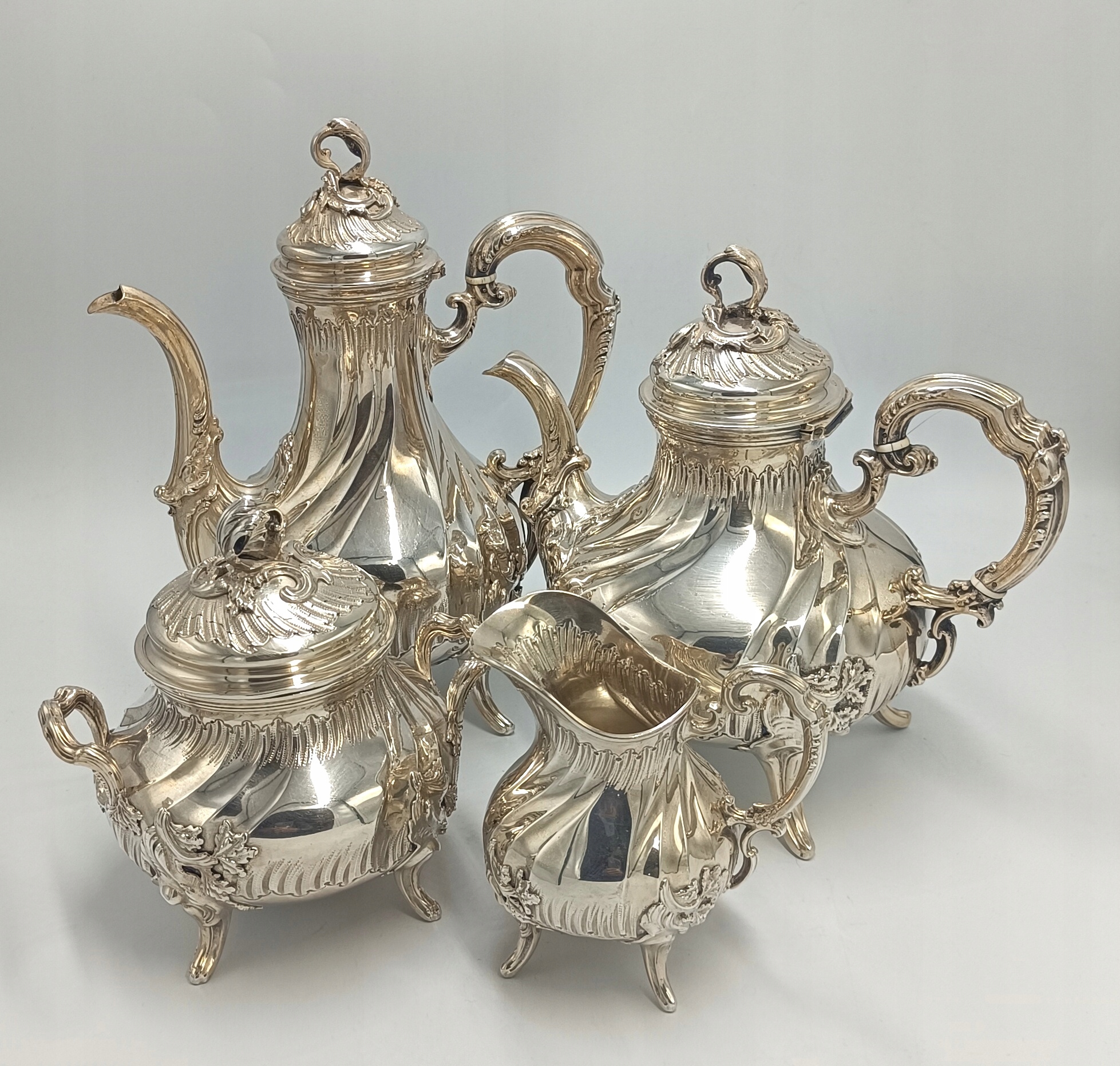 Ми представляємо гідного захоплюючого, стародавнього набору кави та чаю, зробленого повністю з 950 срібла, про що свідчить Пунка з головою мінералу та числом 1 праворуч. Це аукціон поруч)