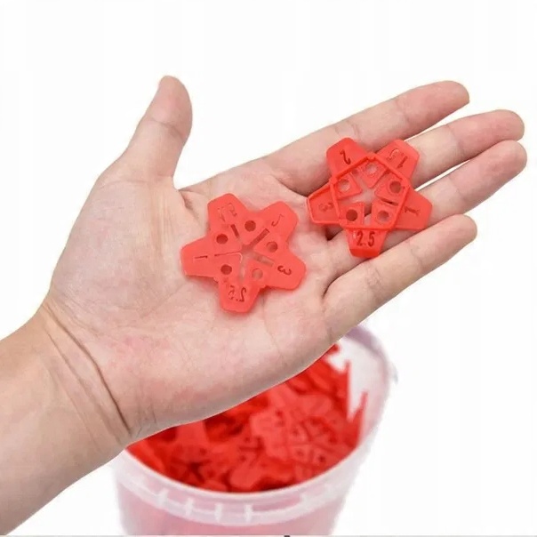 Універсальні хрести у вигляді зірки, кожне з плечей різної товщини. Вони будуть використовуватися при укладанні плитки, допомагаючи отримати шви очікуваної товщини.