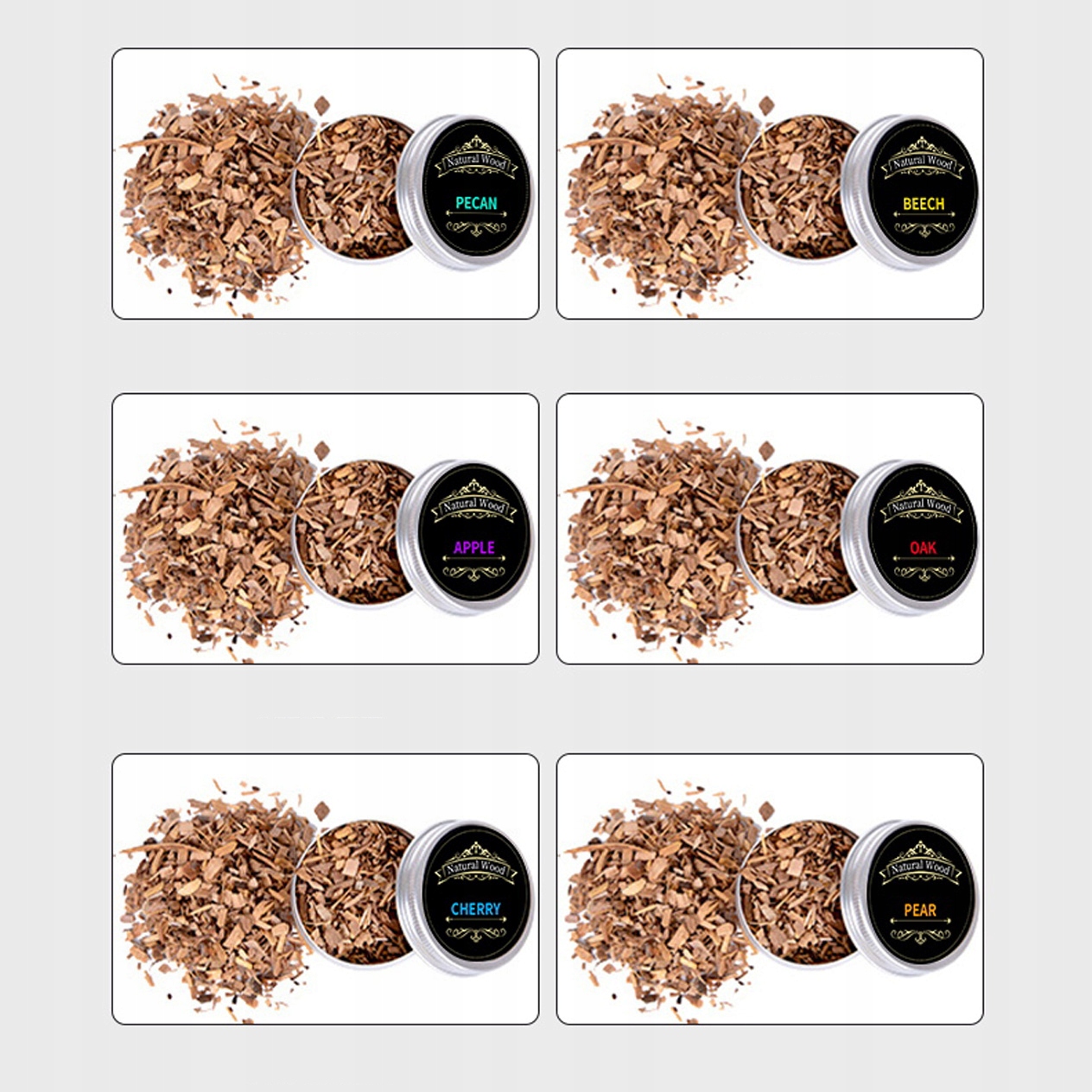 ✅ У наборі ви знайдете стільки, скільки шість різних ароматів деревної стружки , ретельно відібраних і підготовлених - кожна порція висушена до правильної вологості для вилучення повноти аромату.