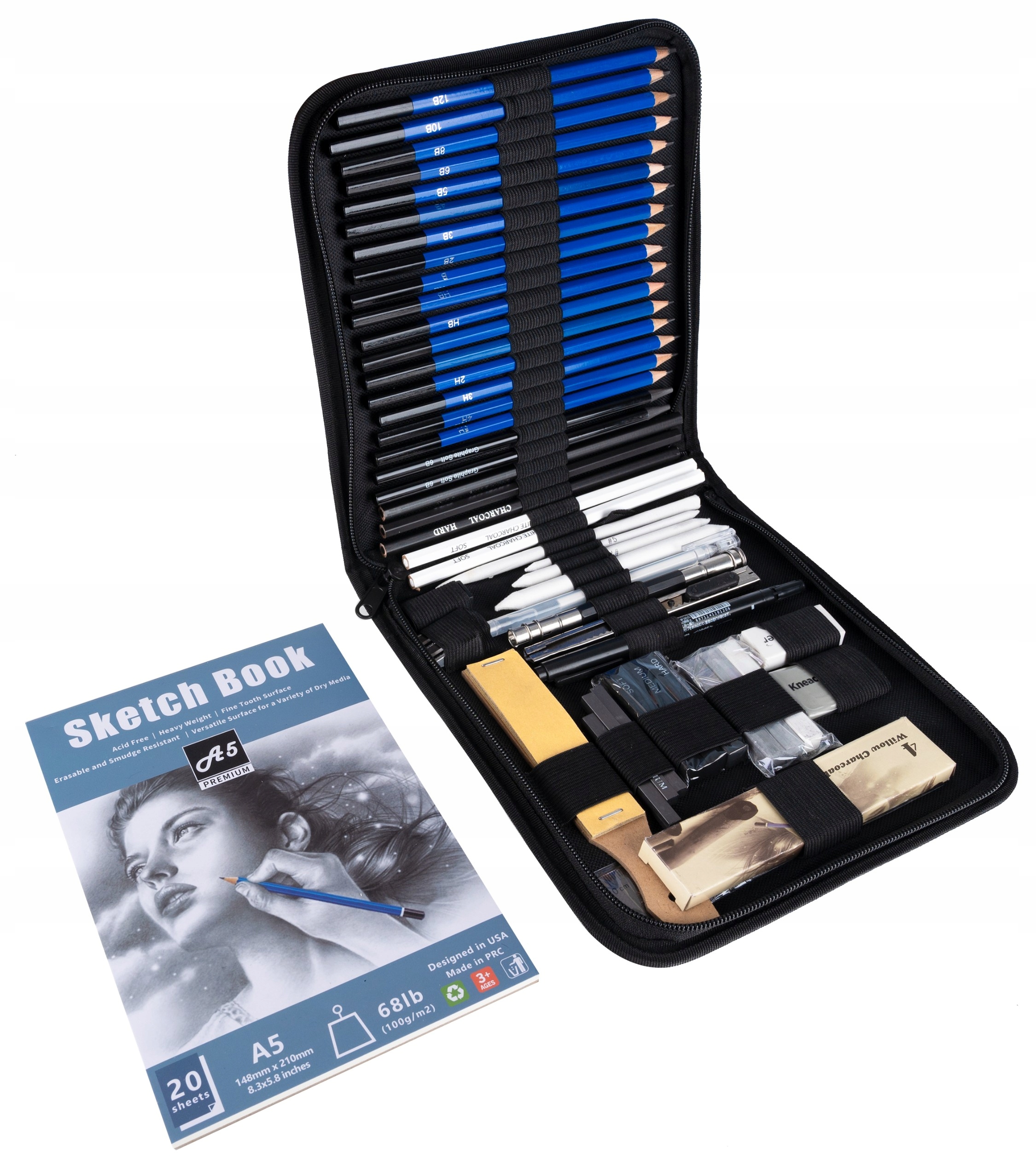 Професійний набір для малювання та затінення, упакований у практичний футляр.