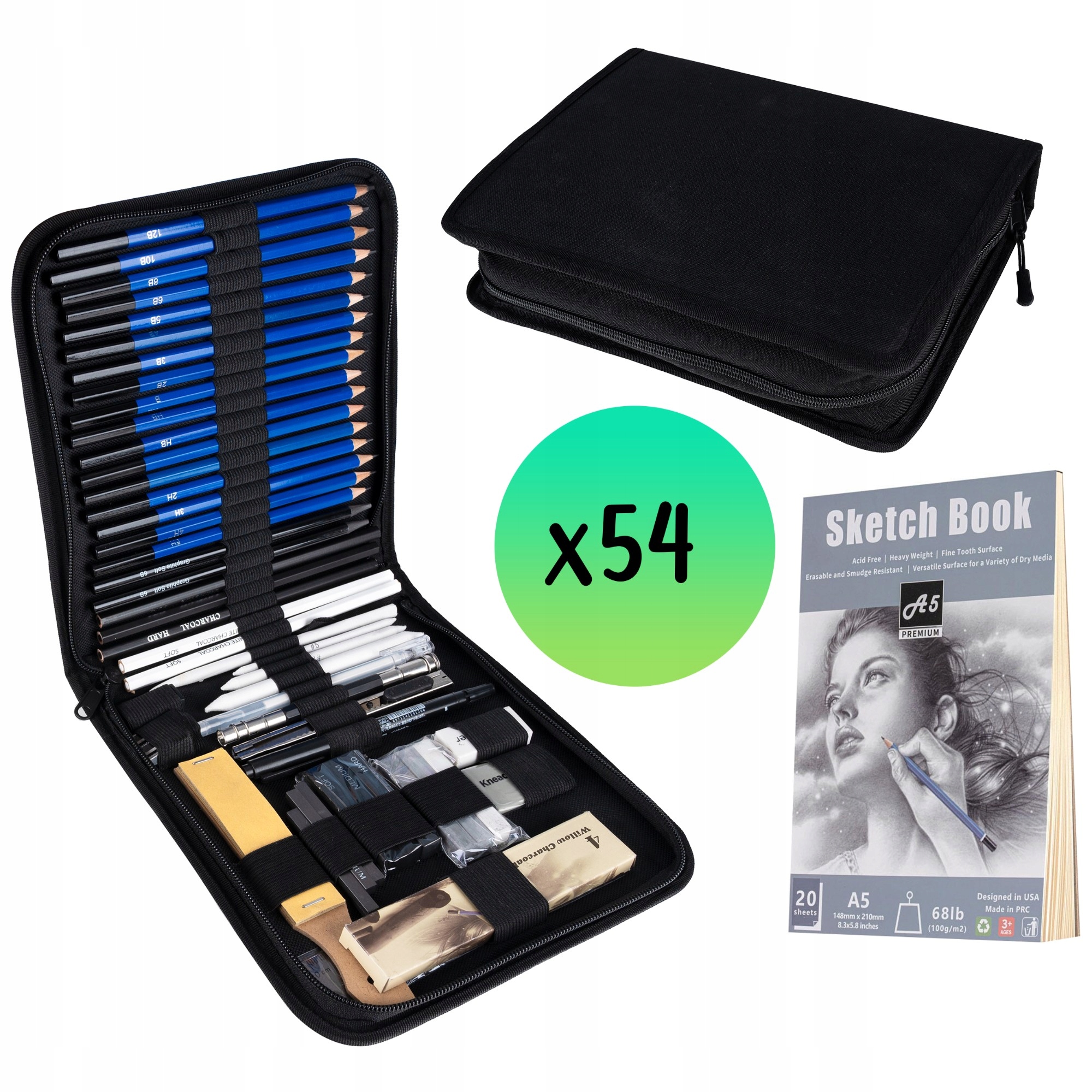 ХУДОЖНИЙ НАБІР ДЛЯ МАЛЮВАННЯ ТА ЕСКІЗІВ 54 ШТ⭐⭐⭐⭐⭐