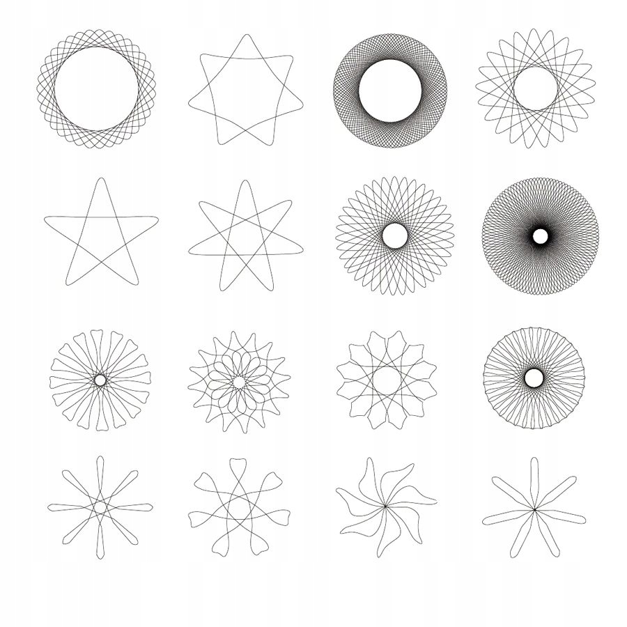 Спірограф використовується для створення геометричних фігур і спіралей, які, поєднуючись, створюють цікаві малюнки.
