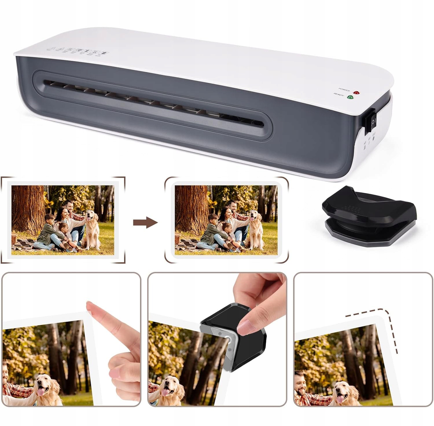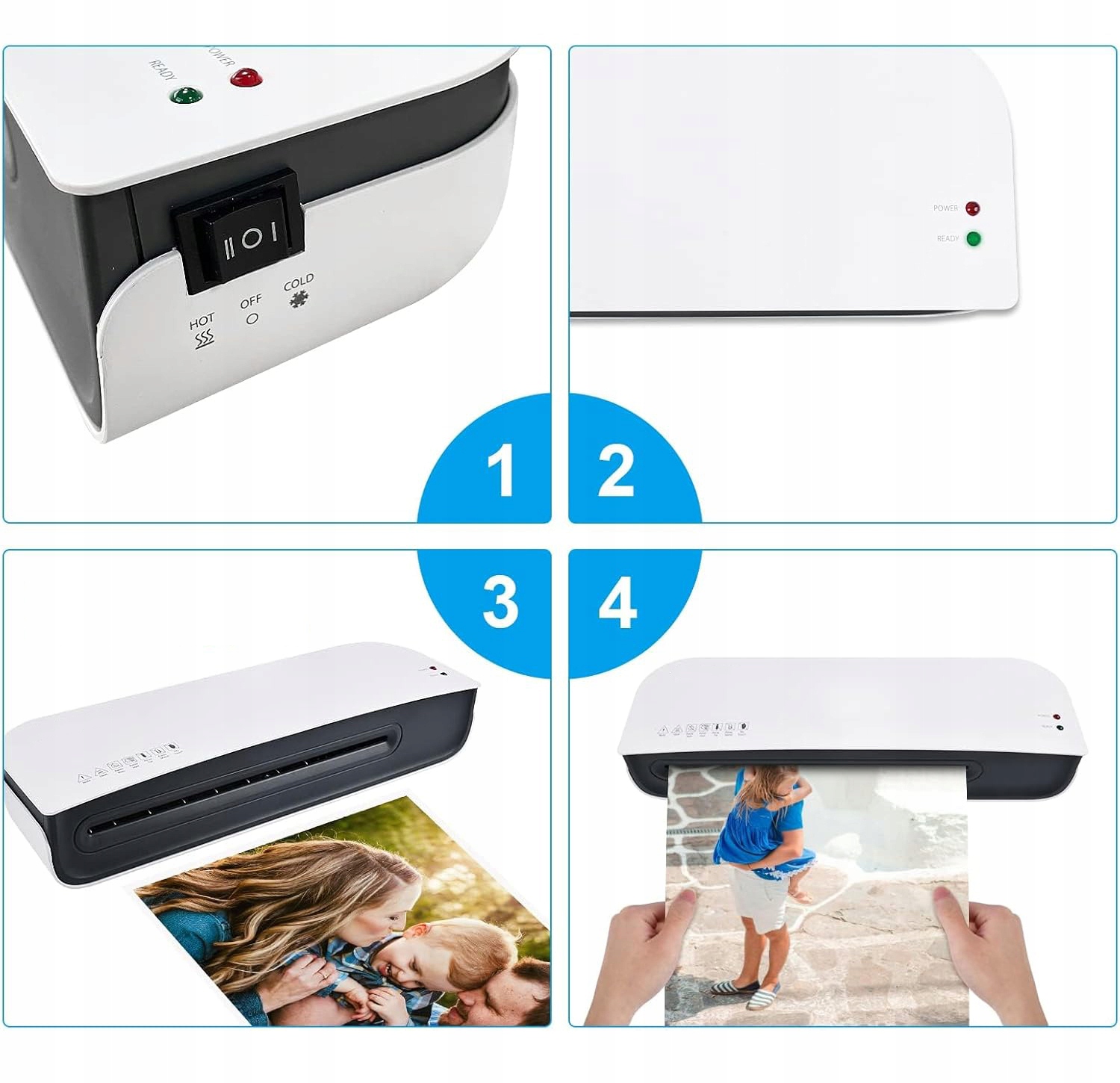 - Ламінатор підходить для фотографій, карток, сертифікатів, дозволів на роботу, меню, зображень та інших матеріалів.