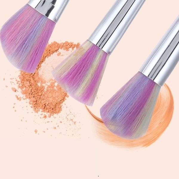 - Пензель для пудри: ця щітка має велику пухнасту головку, яка дозволяє рівномірно та ніжно розподіляти припудрити все обличчя.обличчя. Ідеально підходить для завершення макіяжу для гладкого результату.