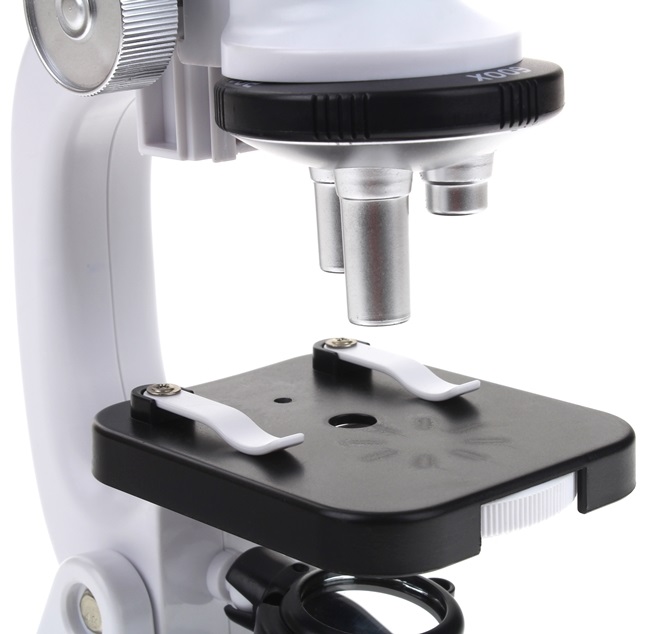 У мікроскопі є все необхідне для огляду мікросвіту. Оснащений обертовою головкою з трьома видами збільшення: 200x/600x/1200x і можливістю регулювання фокусу.