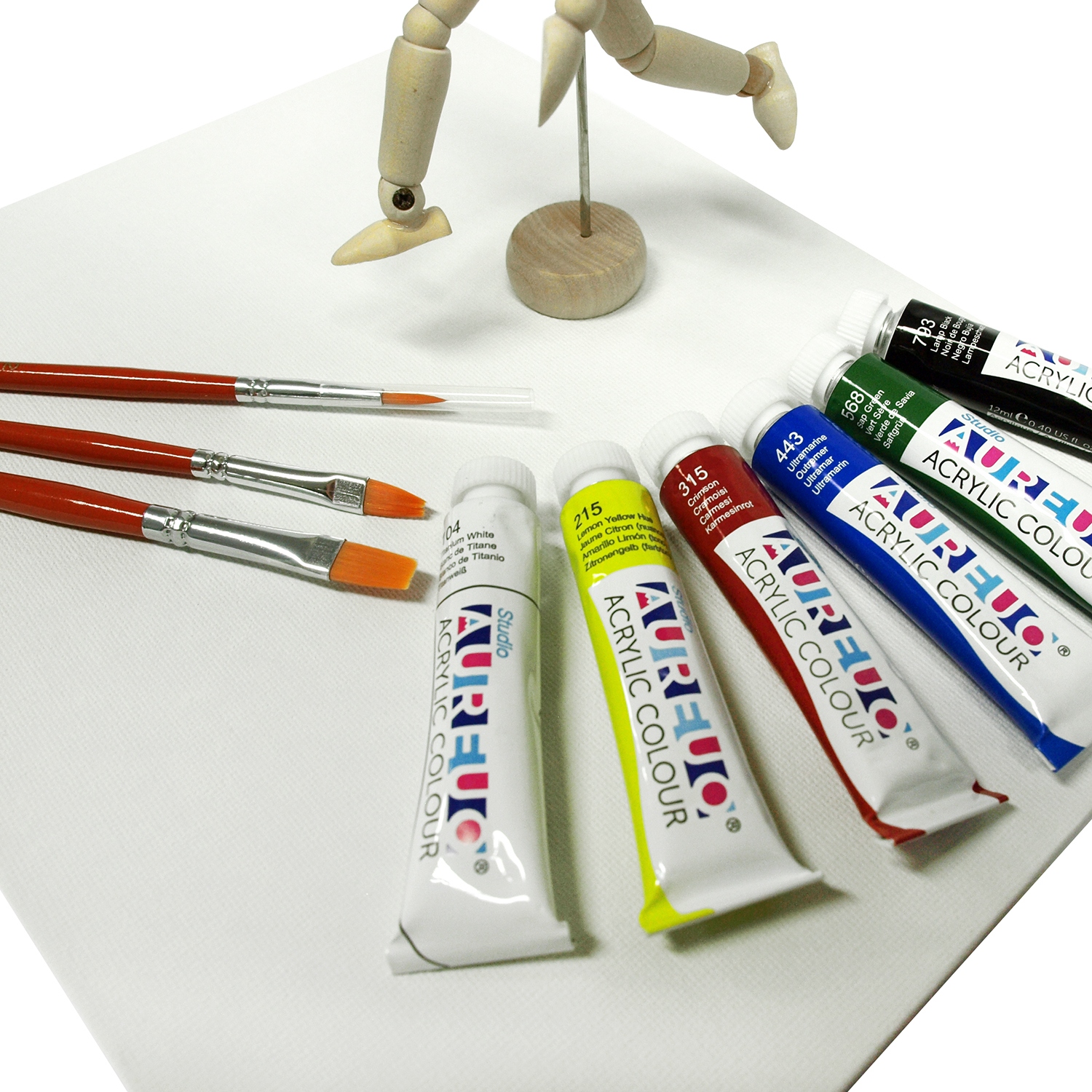 Набір для малювання 11 частин: акрилові фарби, пензлі, панно 20х25, манекен