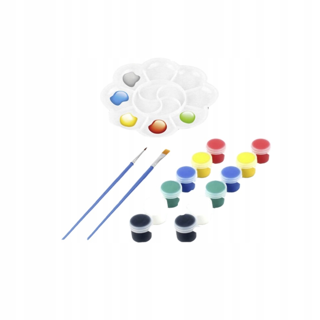У набір входить 12 фарб, які дозволять створювати багаті та різноманітні малюнки. Крім того, 2 кисті різного розміру та аксесуари в рамці допоможуть вам на кожному етапі творчості.