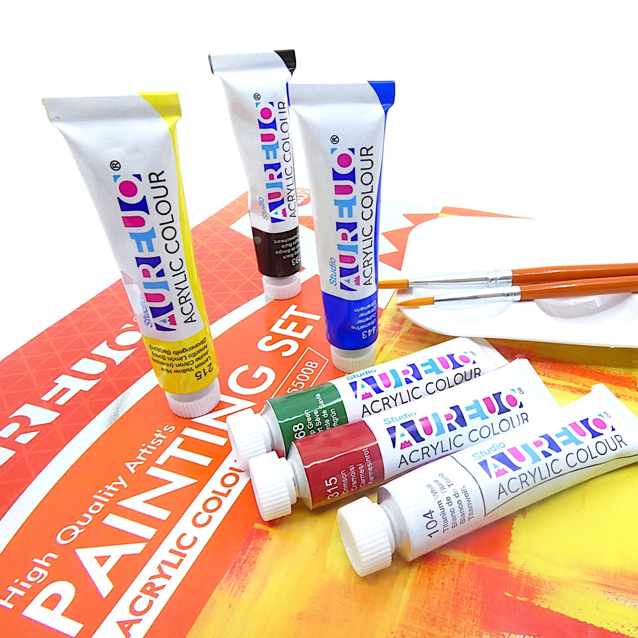 Набір для малювання Aureuo, 10 шт. Блок акрилових фарб, палітра пензлів