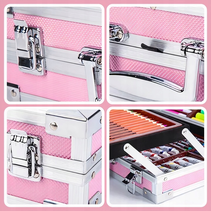 ✔ худоба та порядок ✔ Усі елементи художнього набору обережно та акуратно розміщені посередині валізи. Суцільні замки гарантують, що ваші інструменти залишатимуться у відмінному стані, а порядок збережеться.