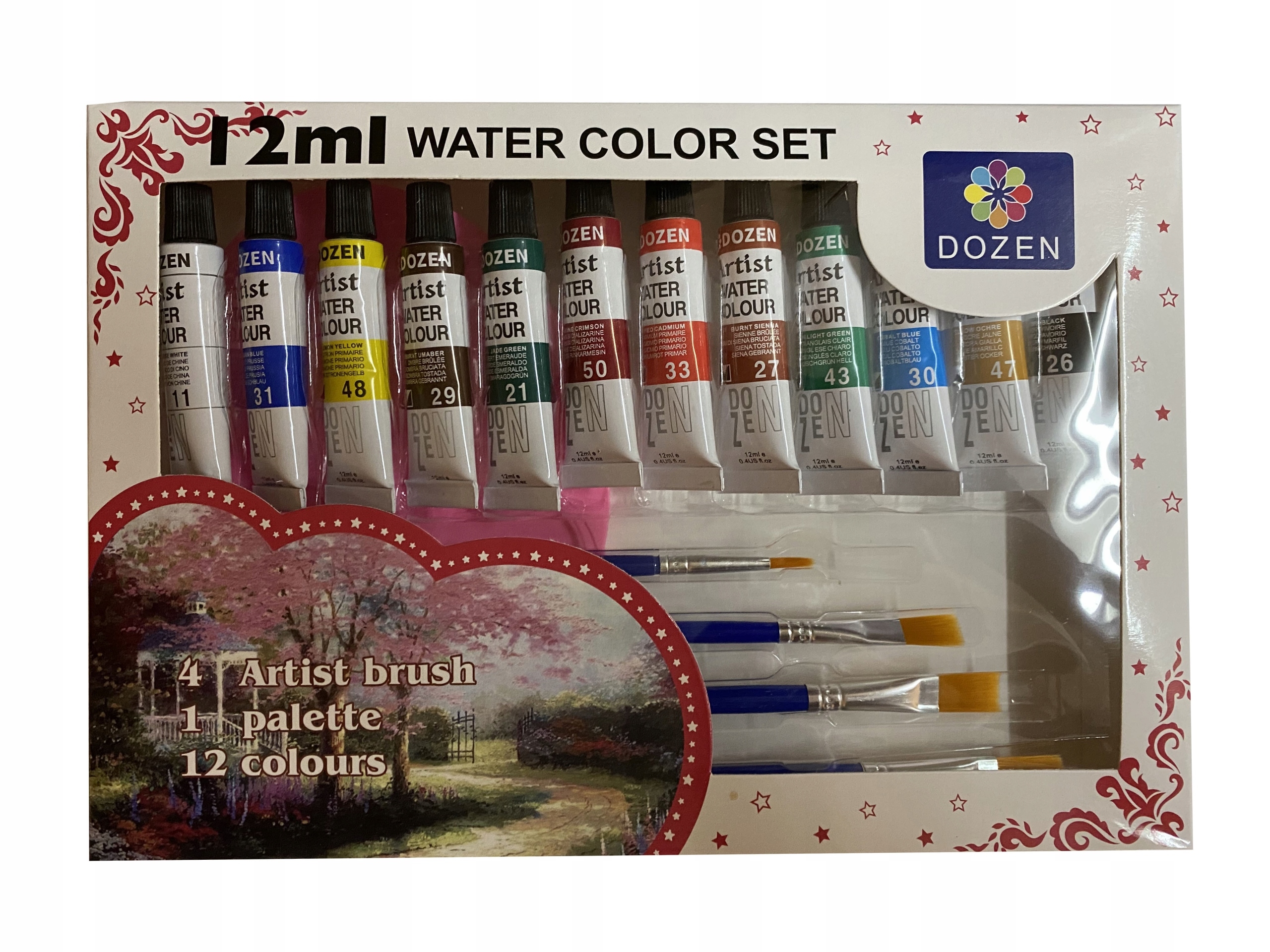 Акварельні фарби в тюбику 12 кольорів з дюжиною пензлів