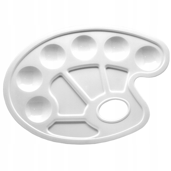 Невелика палітра для малювання дуже добре підійде користувачам усіх видів фарб у тюбиках . Виготовлений із пластику, він оснащений зручною ручкою для великого пальця. Палітра має 10 виїмок: