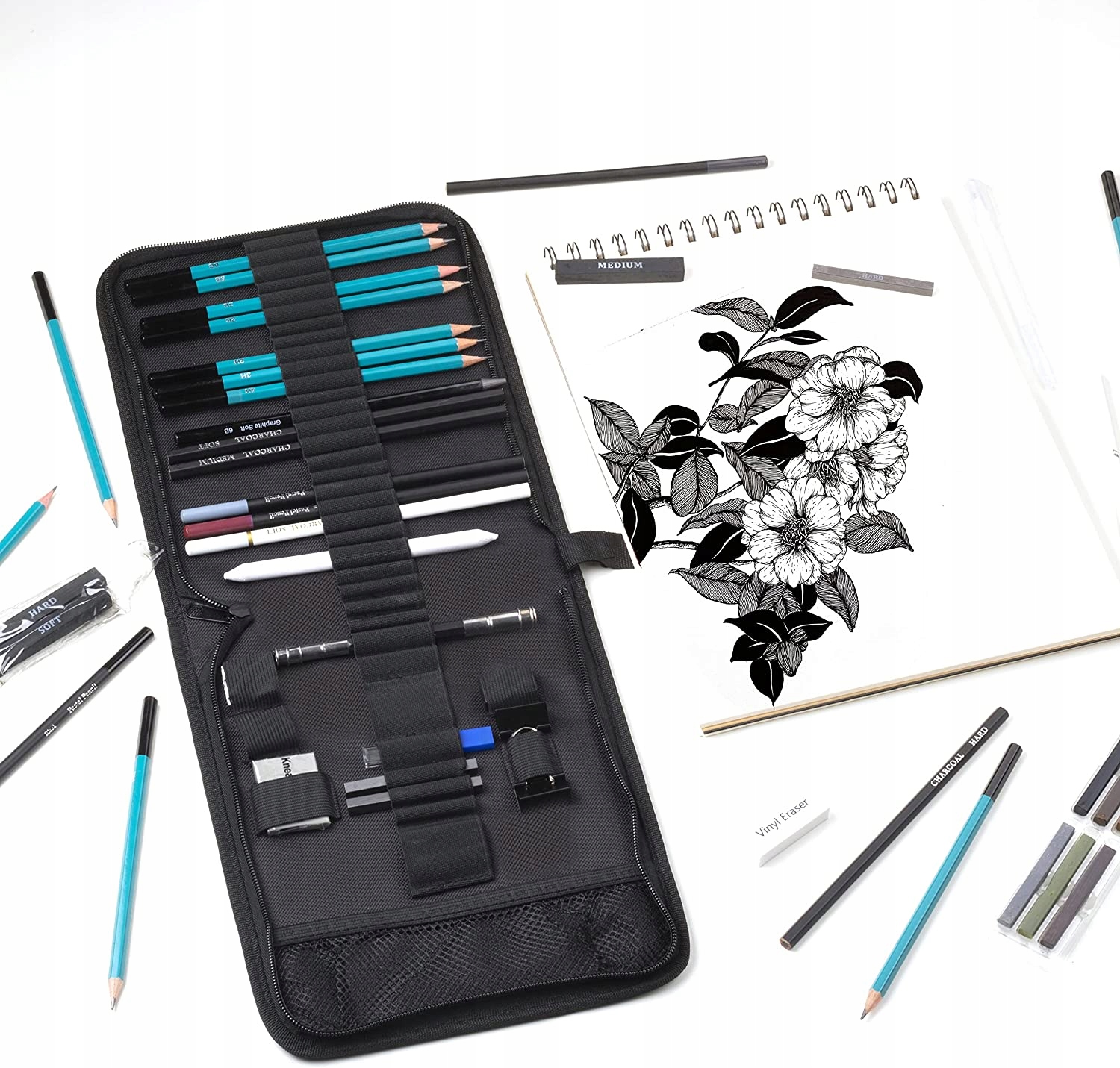 ✍️ ВЕЛИКИЙ НАБІР - збільшений набір із 50 елементів включає набір олівців, вугілля та аксесуари для різні техніки малювання