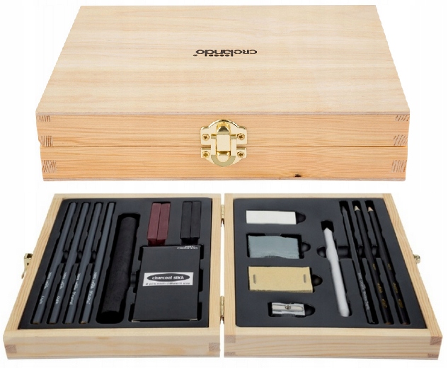 Набір для малювання вугіллям 26 штук вугілля в красивій дерев’яній коробці
