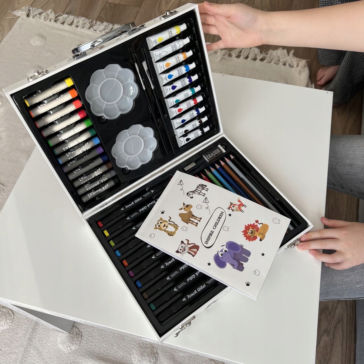 Надзвичайний художній набір, що складається з 68 різноманітних елементів, завдяки якому ваш малюк має можливість самовиражатися, розвивати художні навички та створювати незабутні витвори мистецтва.