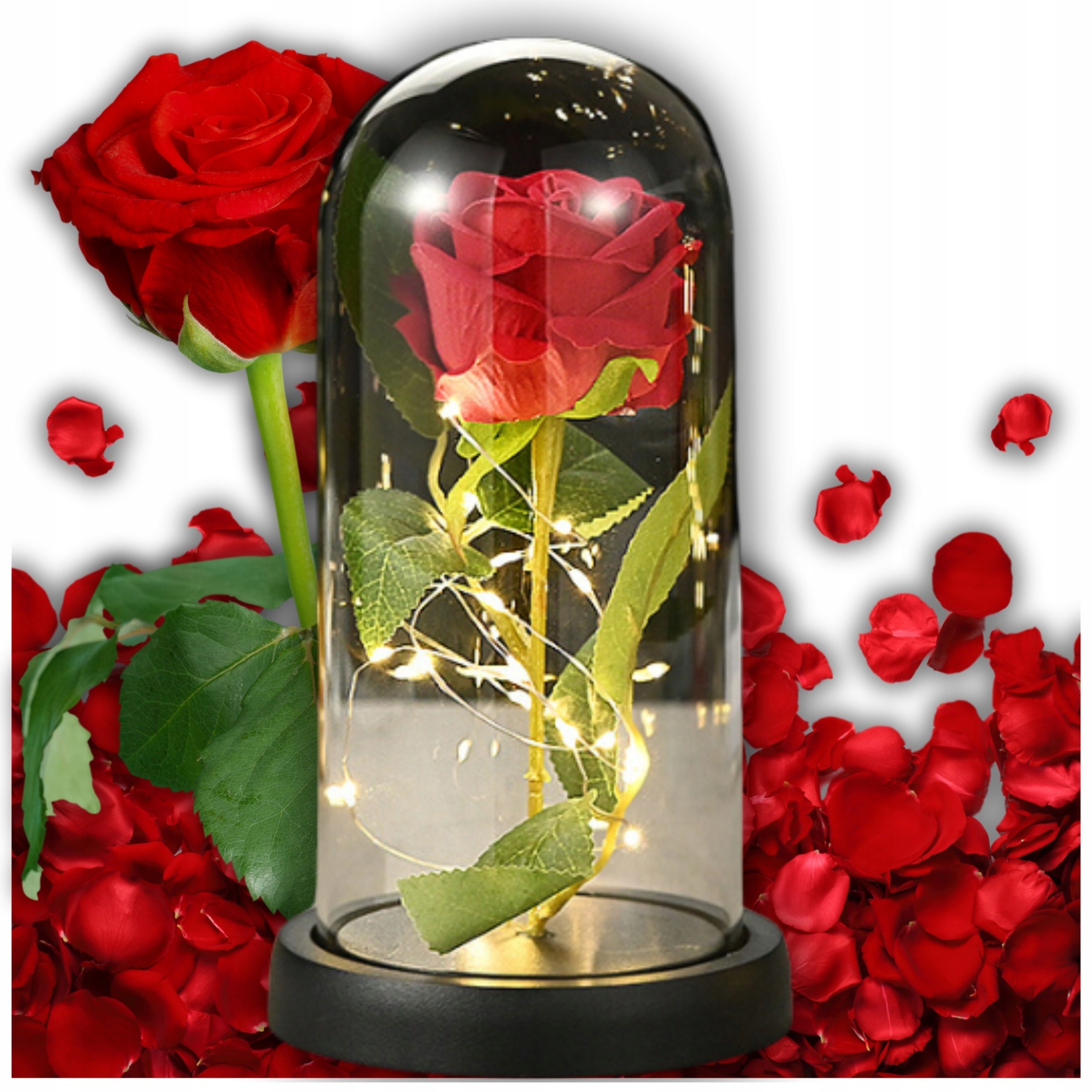 Вічна троянда у склі зі світлодіодами, що світяться, подарунок до Дня святого Валентина, Жіночого дня, Дня матері + подарункова коробка