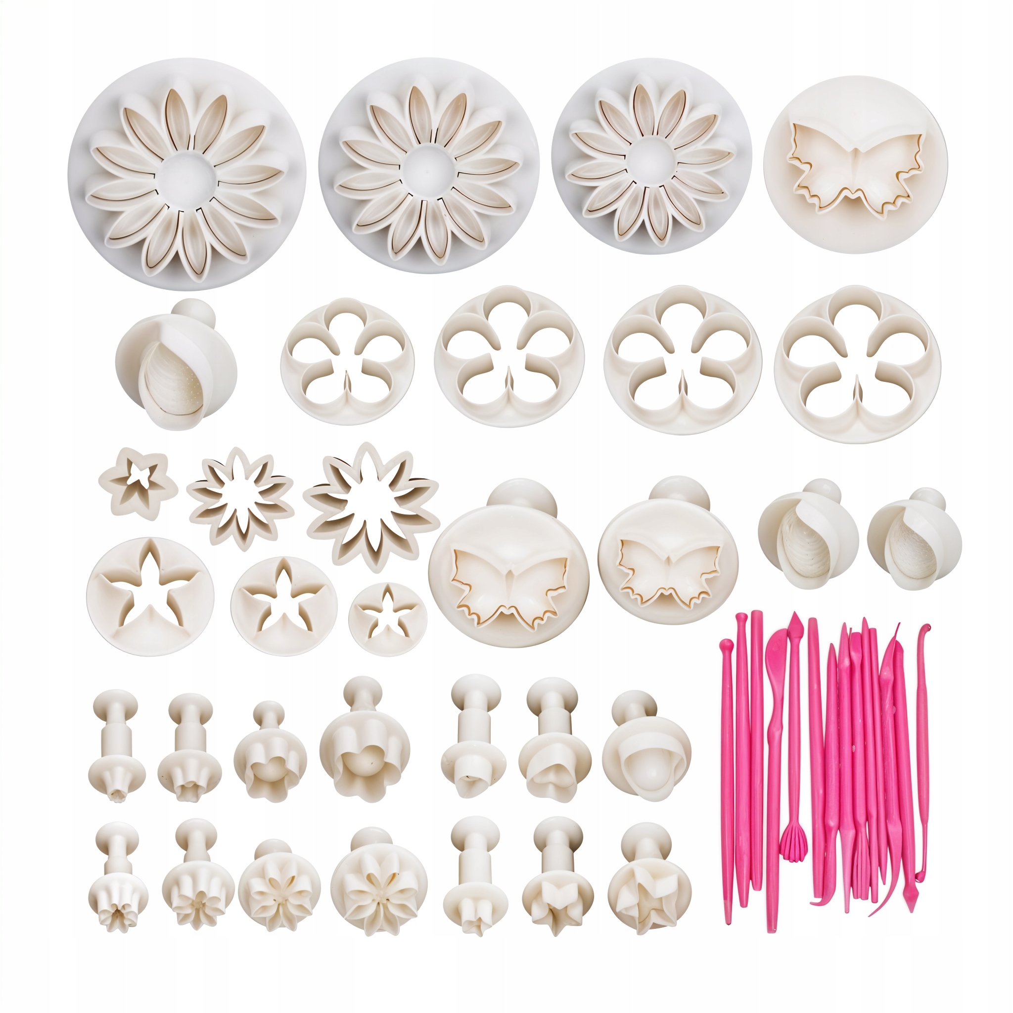 Набір 47 шт. формочки-катери, ідеальні для любителів випічки та прикраси кондитерських виробів. Цей повний набір містить усе необхідне для пресування печива та створення красивих помадних і марципанових прикрас/