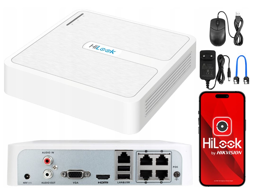 1x рекордер Hikvision HiLook NVR-4CH-H/4P