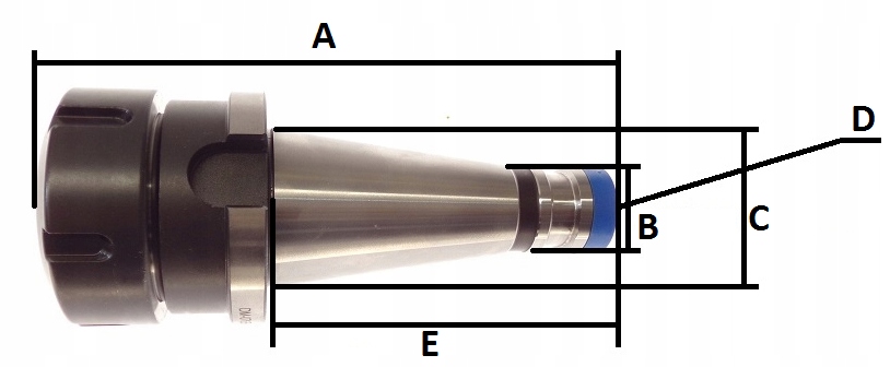 КРИПЛЯ ДЛЯ ЦАНГИ ER40, НА ЗОБРАЖЕННІ ПОКАЗАНО РОЗМІРИ КОЛЕКЦІЙ.