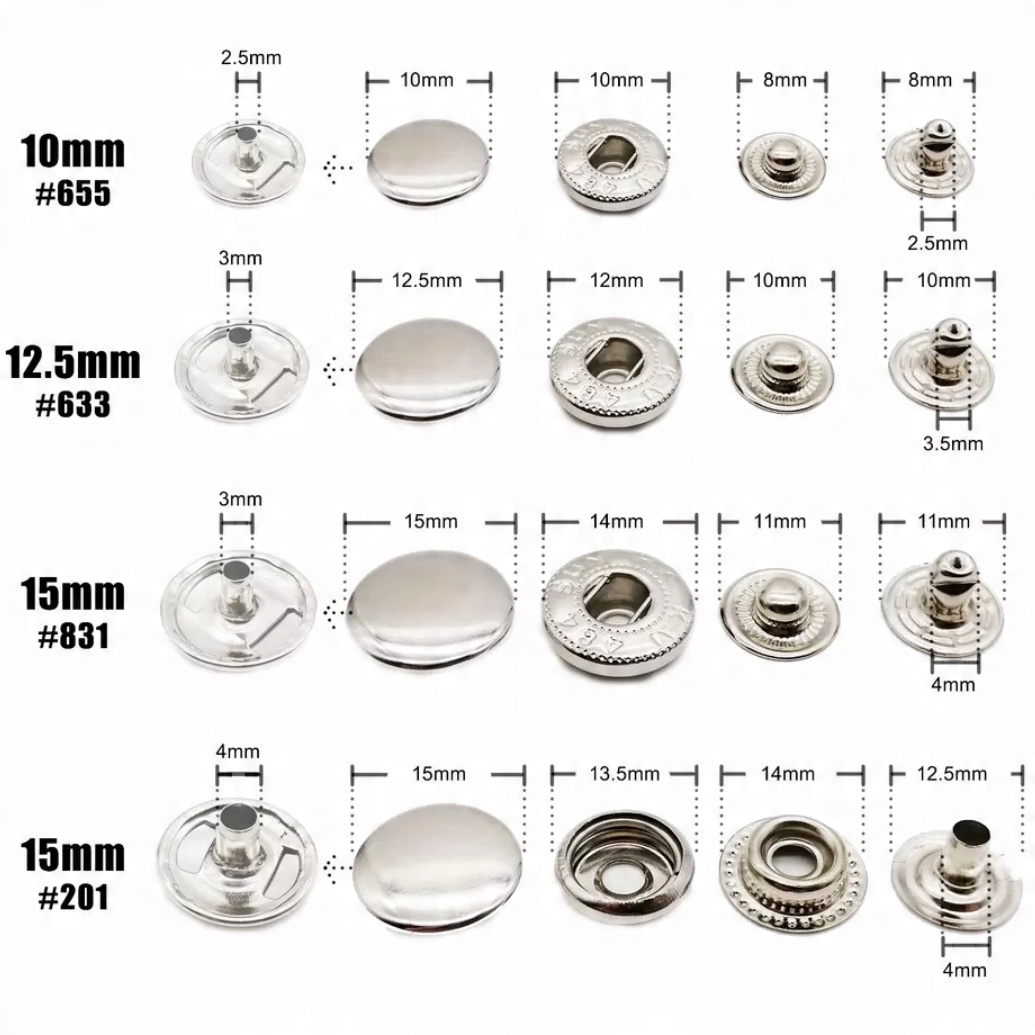 Ви отримуєте знімки разом із інструментами. 160 елементів, з яких можна зробити 40 повних застібок.