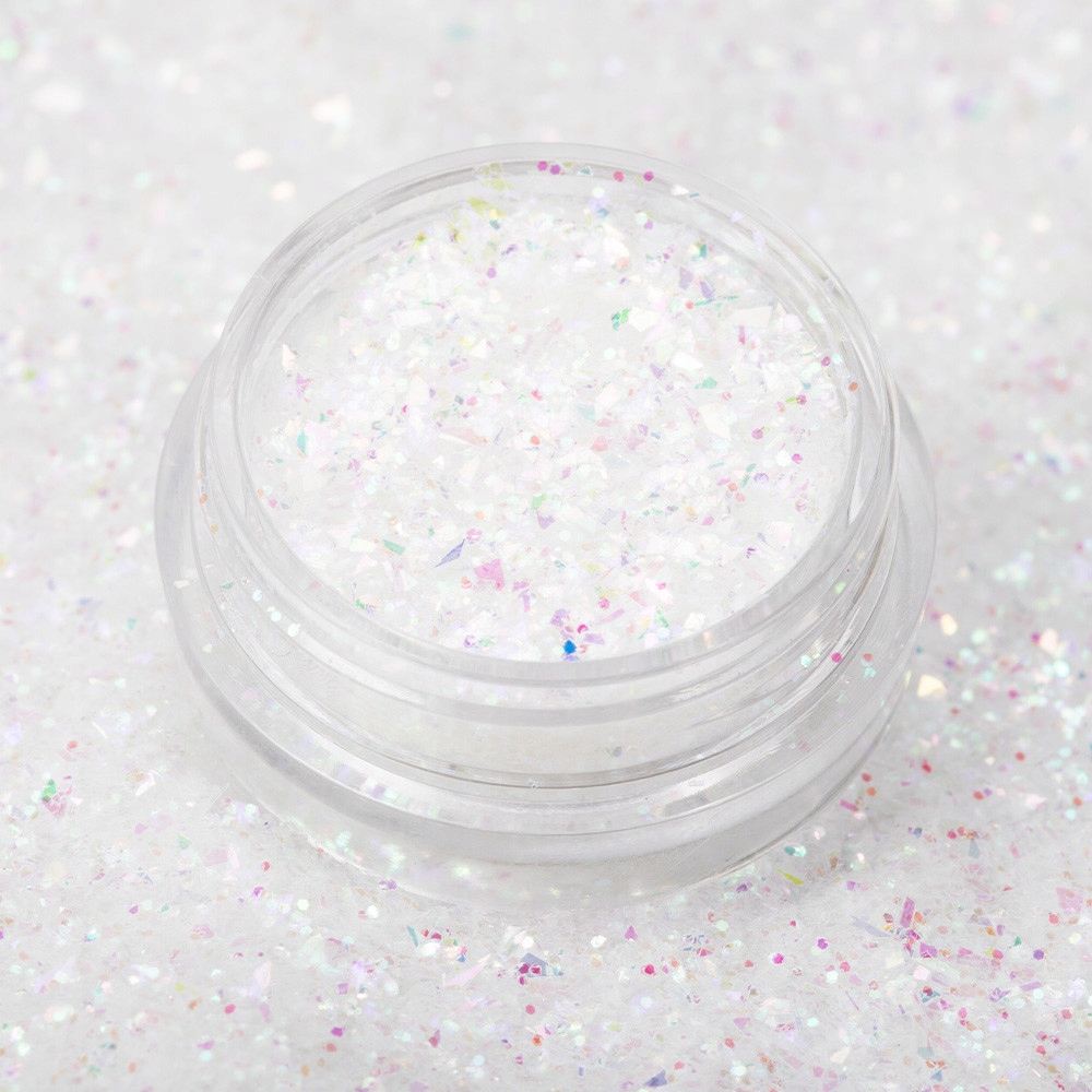 Ice Crush - мерехтливий манікюр із цікавим Ваш шлях до сліпучого вигляду в багатовимірній формі - поєднання декількох розмірів і форм райдужних блискучих частинок.