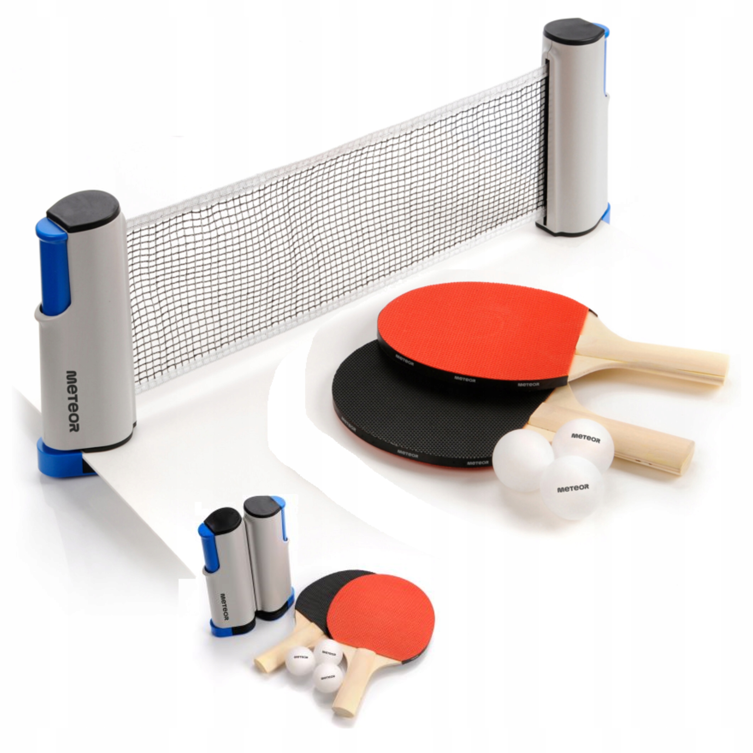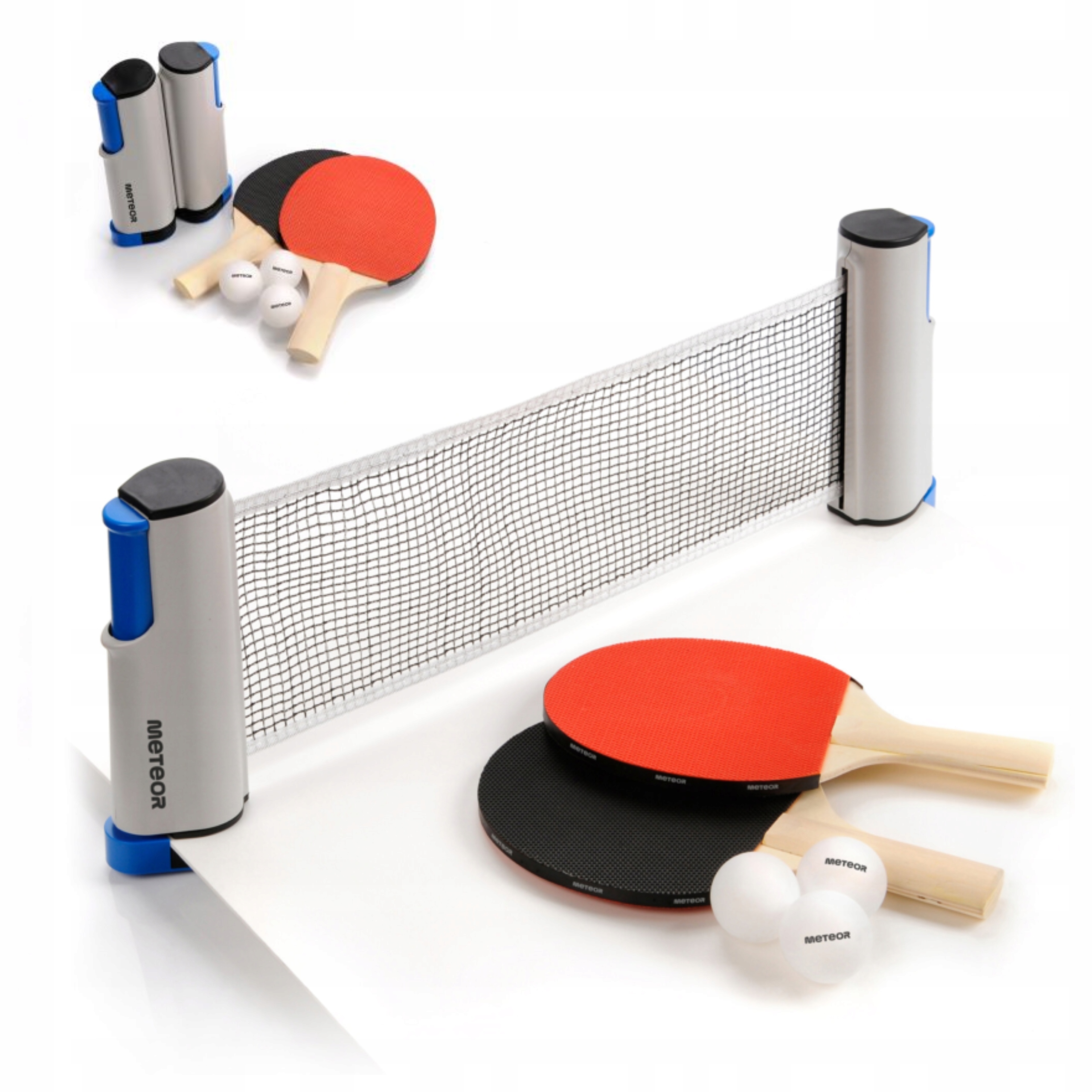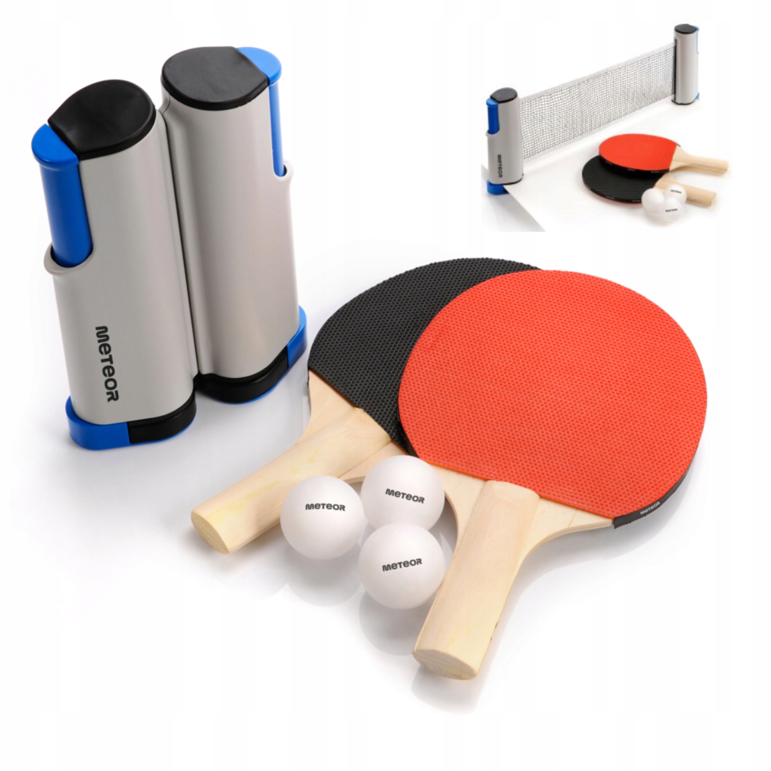 Повний набір для настільного тенісу Meteor дозволить вам зіграти в енергійний матч, у якому ви здивуєте суперника своєю майстерністю та бездоганним контролем м'яча. Одним з елементів набору є рулонна сітка, механізм якої інтегрований зі стовпами. Кріплення до столу у вигляді затискної системи. Ергономічні біти з гумовою підкладкою. Легкі кулі з високоякісного ABS. У набір для настільного тенісу входить сітка, дві ракетки та 3 м'ячі з логотипом Meteor.