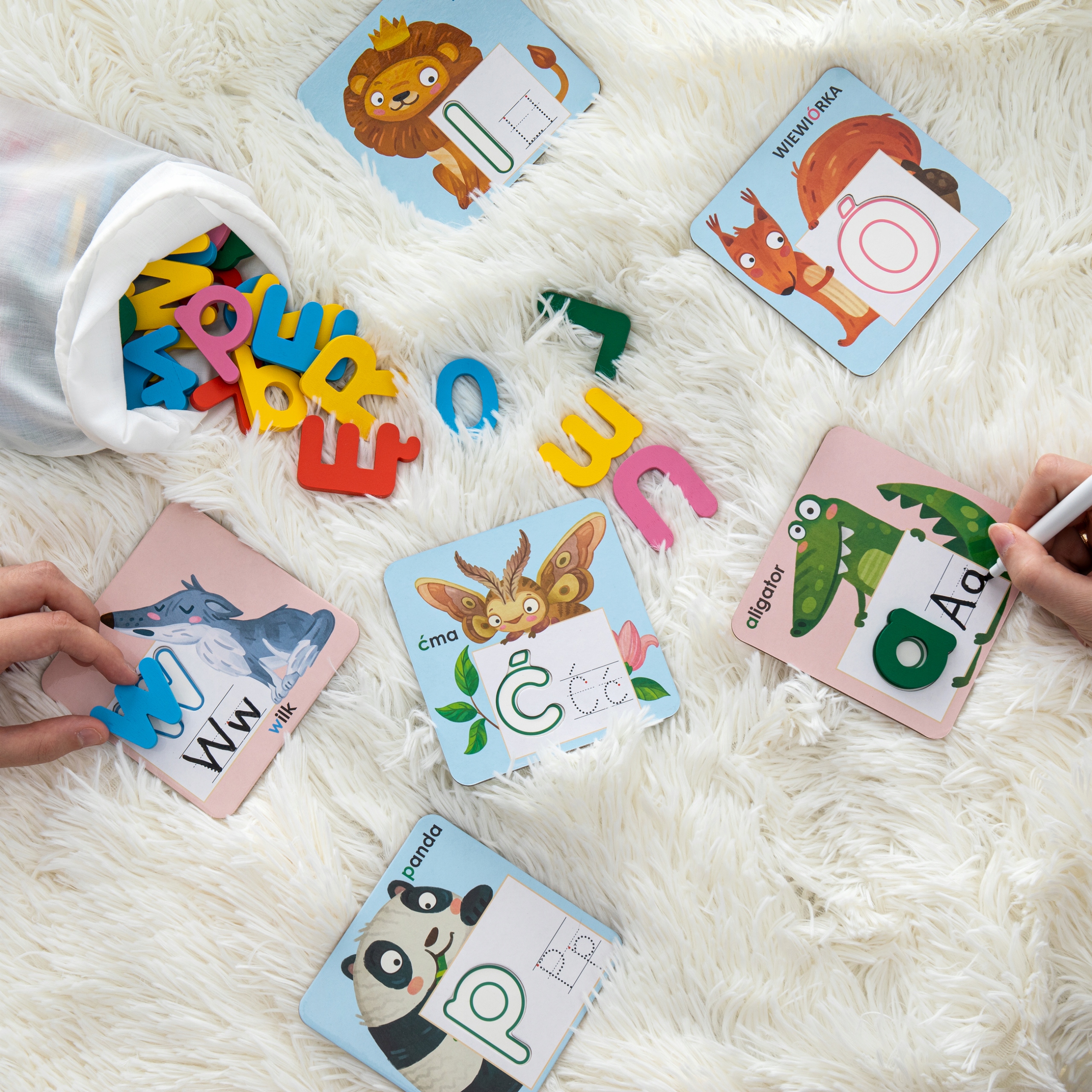 1) 32 двосторонні картки з літерами польського алфавіту - великі та малі літери - розмір картки - 10,8 см