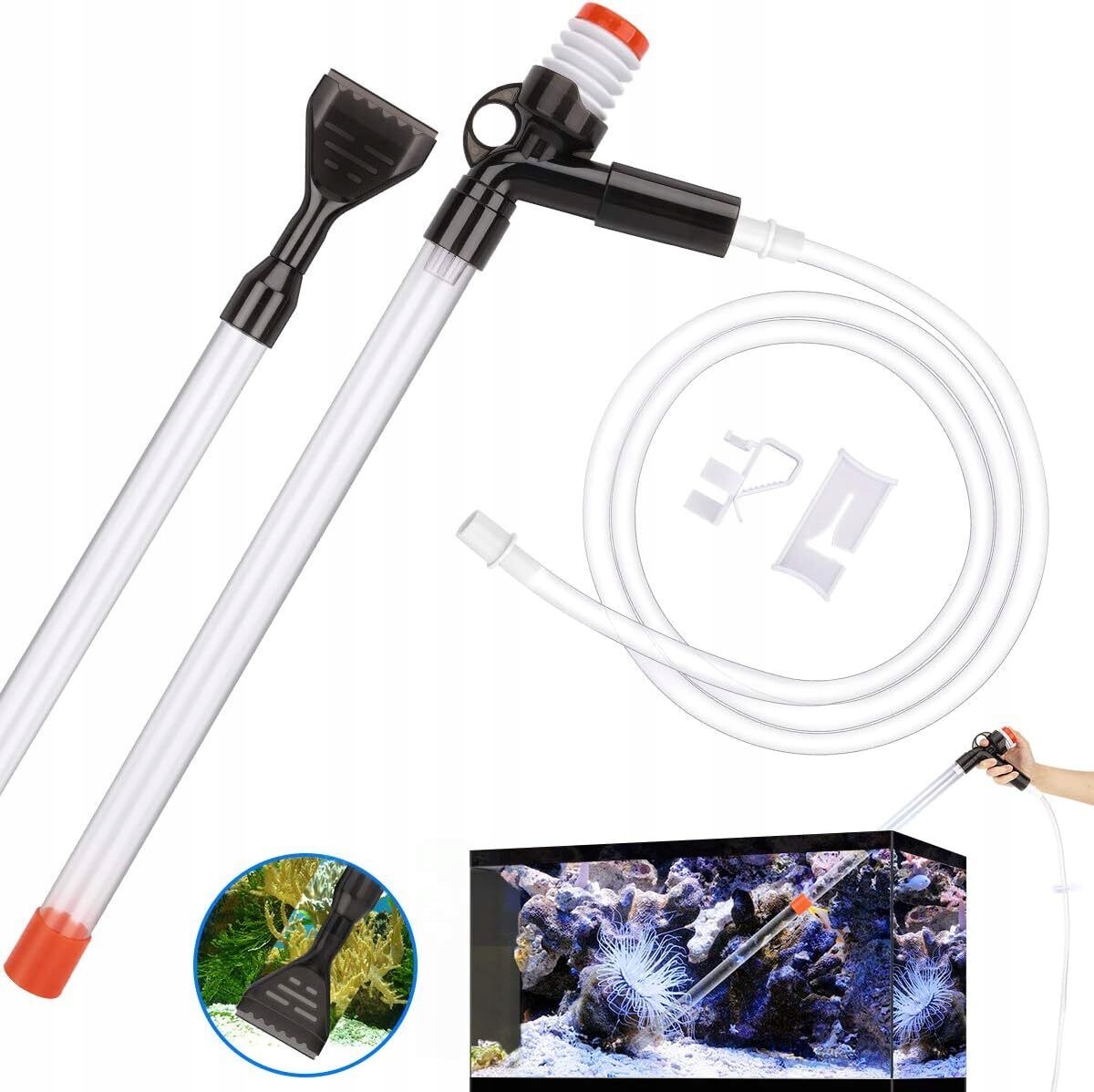 🐟🐟 Три функції в одній: b > Акваріумний пилосос має вузьку передню кришку, яка легко всмоктує бруд. Відповідний фільтруючий кошик запобігає засмоктуванню дрібної риби та субстрату. Пилосос міцний і довговічний, а також дозволяє міняти воду, мити пісок, видаляти мох і зішкребти водорості. Все в одному, простий у використанні. За допомогою очищувача фільтра для акваріумних рибок ви можете змінювати воду та підтримувати її свіжою. За допомогою скребка для скла ви можете видалити водорості та плями з акваріума.