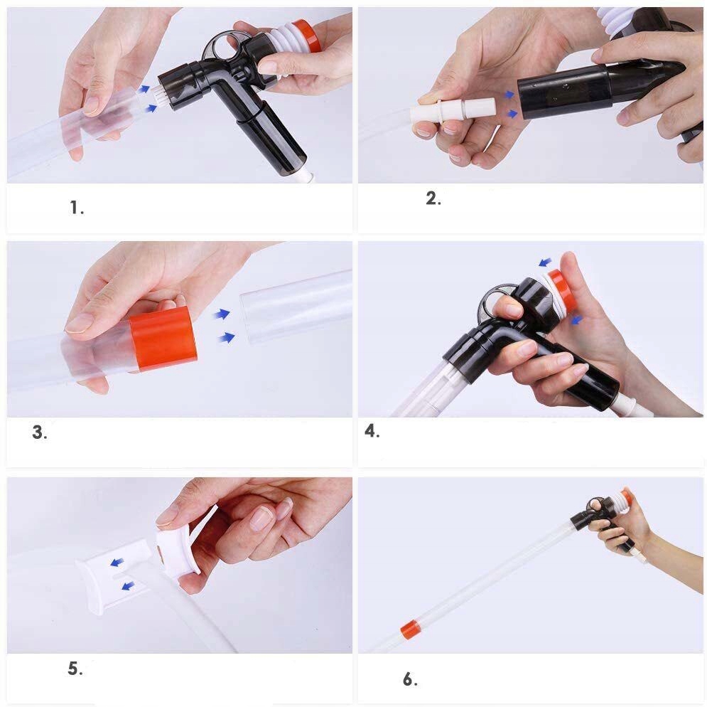 🐟🐟 Простий у використанні: Акваріумний пилосос, після встановлення всіх аксесуарів, натисніть кнопку кілька разів, щоб переконайтеся, що труба подачі води заповнена водою. Коли вода буде плавно злита, ви можете зупинити пилосос, і всмоктування автоматично відновиться. Якщо потік води припиниться, натисніть і утримуйте курок, доки потік води не стабілізується. Вбудований зворотний клапан запобігає зворотному потоку забруднень. З регулятором потоку, простий у встановленні та використанні: просто натисніть кнопку тиску повітря, щоб випустити воду. Оснащений зворотним клапаном і клапан вже встановлений, не потрібно його перевстановлювати, зручний у використанні.