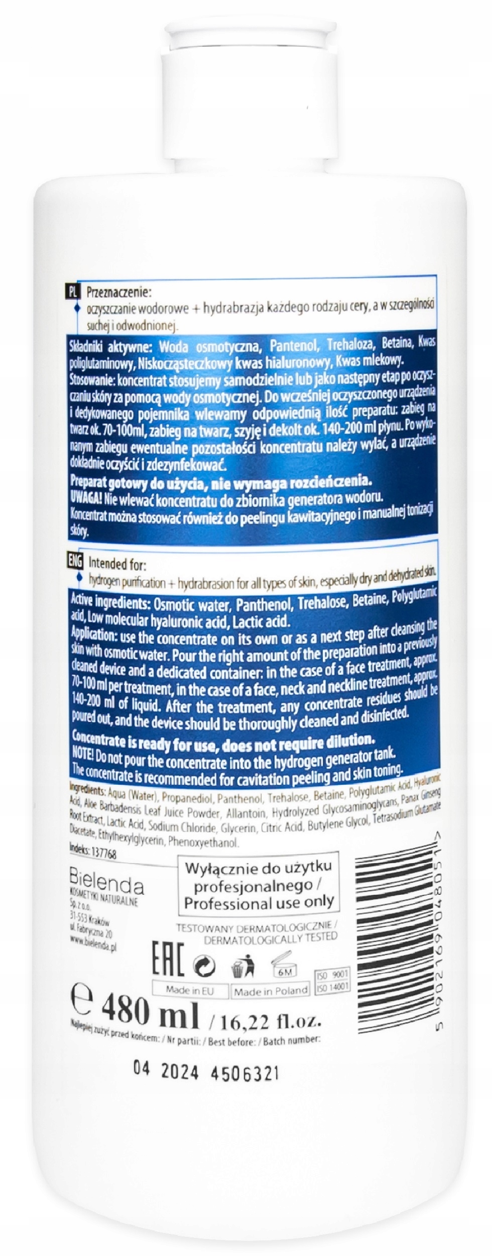 - Гідроочисний і зволожуючий концентрат Bielenda H2 Pure capacity. 480 мл