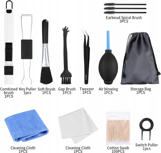 Цей набір містить аж 14 різних інструментів і аксесуарів, які забезпечують комплексне очищення та догляд за вашими електронними пристроями. Будь то видалення пилу з клавіатури чи очищення екрана мобільного телефону, у нашому наборі є все, що вам потрібно.