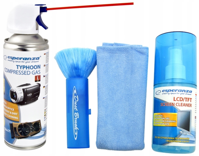 Набір для чищення ноутбука Esperanza, стиснене повітря + гель для чищення монітора + серветка з мікрофібри + антистатична щітка