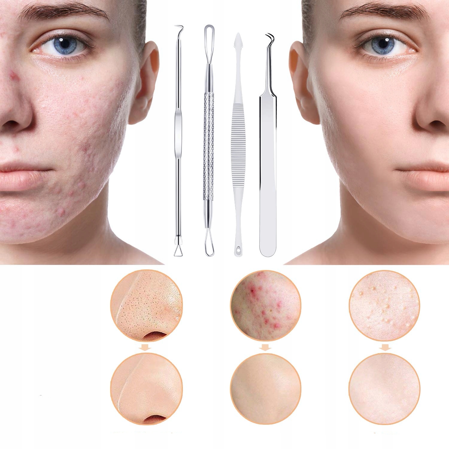 - ✅Професійні петельні ложкипризначені для роботи з чорними крапками, вуграми та іншими забрудненнями на обличчі