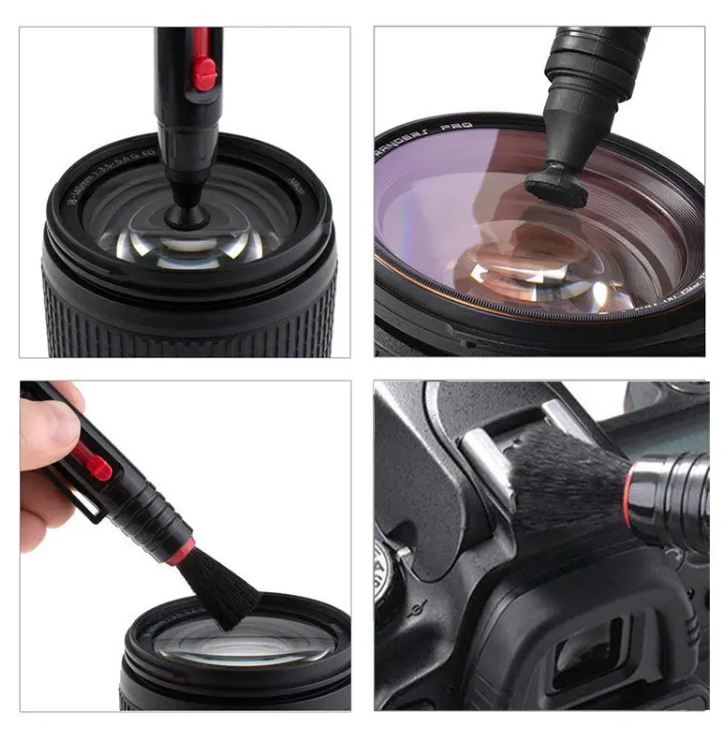 Ми завжди можемо мати з собою ручку розміром з ручку та використовувати її для легкого очищення лінз нашого обладнання. Ручка має три наконечники: регульовану щіточку з ніжного волокна та карбонові наконечники для видалення жирних плям і відбитків пальців з лінзи.