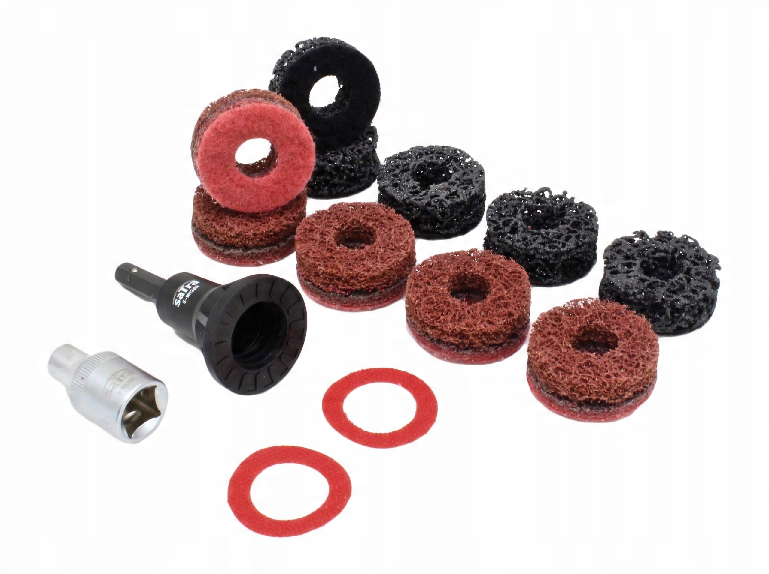 Шліфувальний круг із набором дисків, призначений для очищення коліс, маточин, дисків і гальмівних барабанів перед їх повторним складанням.