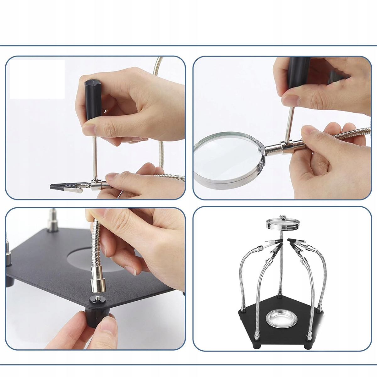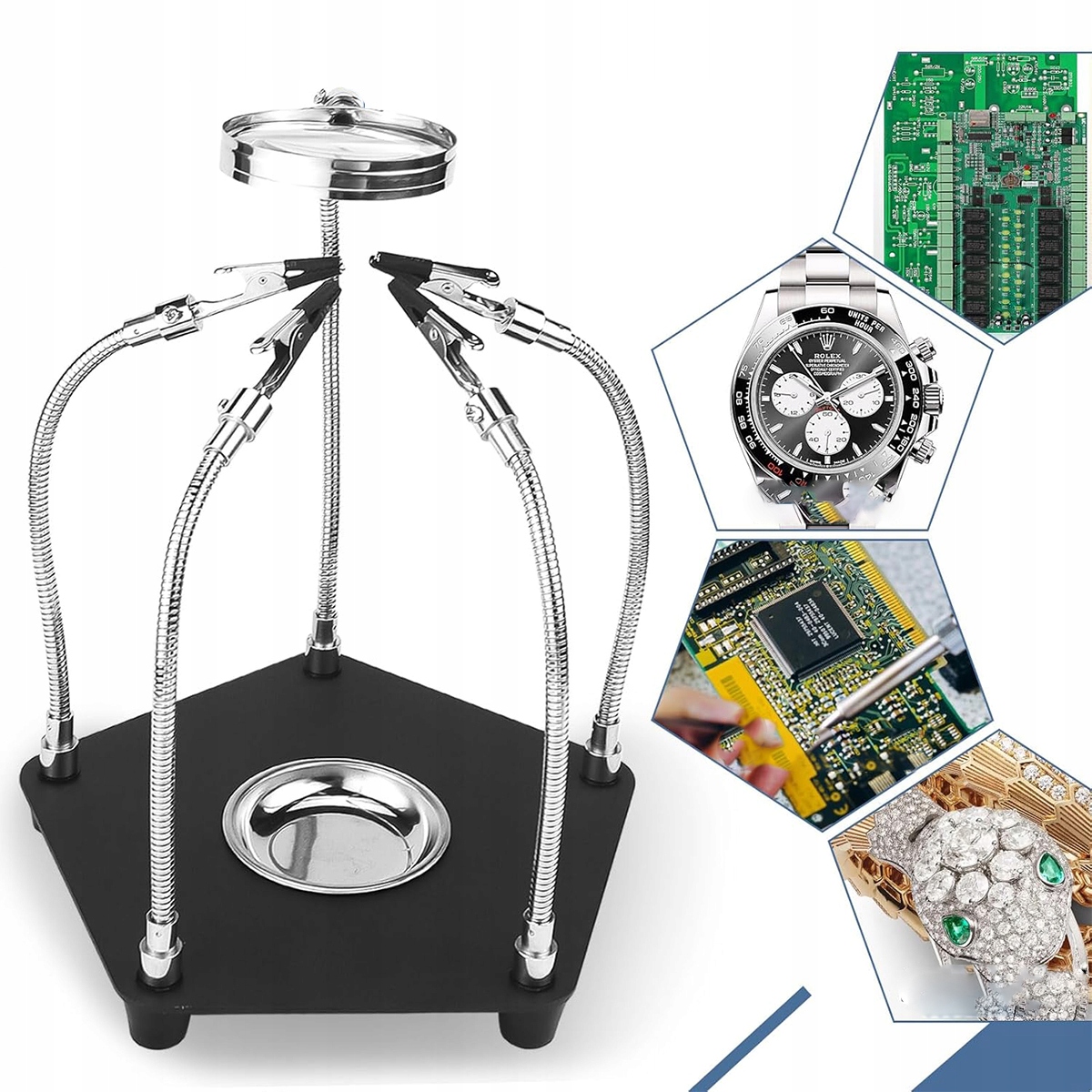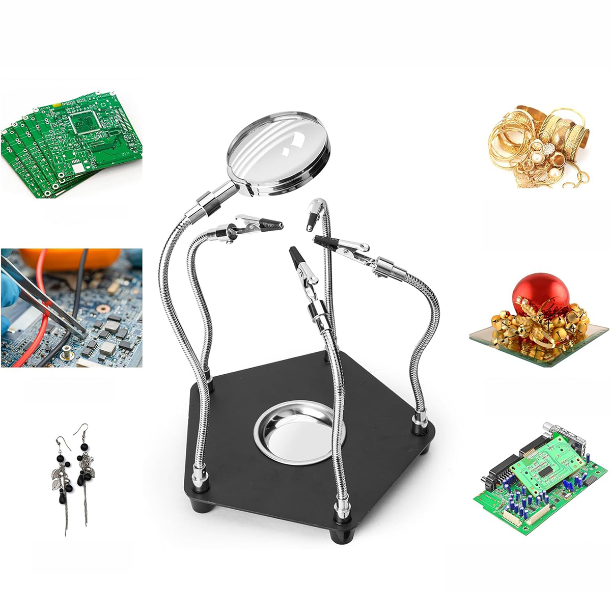 Допоміжний пристрій для паяння третьої руки, магнітні допоміжні руки, опора для паяння зі збільшувальним склом, 4 гнучкі кронштейни та затискачі типу «крокодил», аксесуар для інструментів для моделювання, тримач друкованої плати для рукоділля, ювелірних виробів, хобі, майстерні