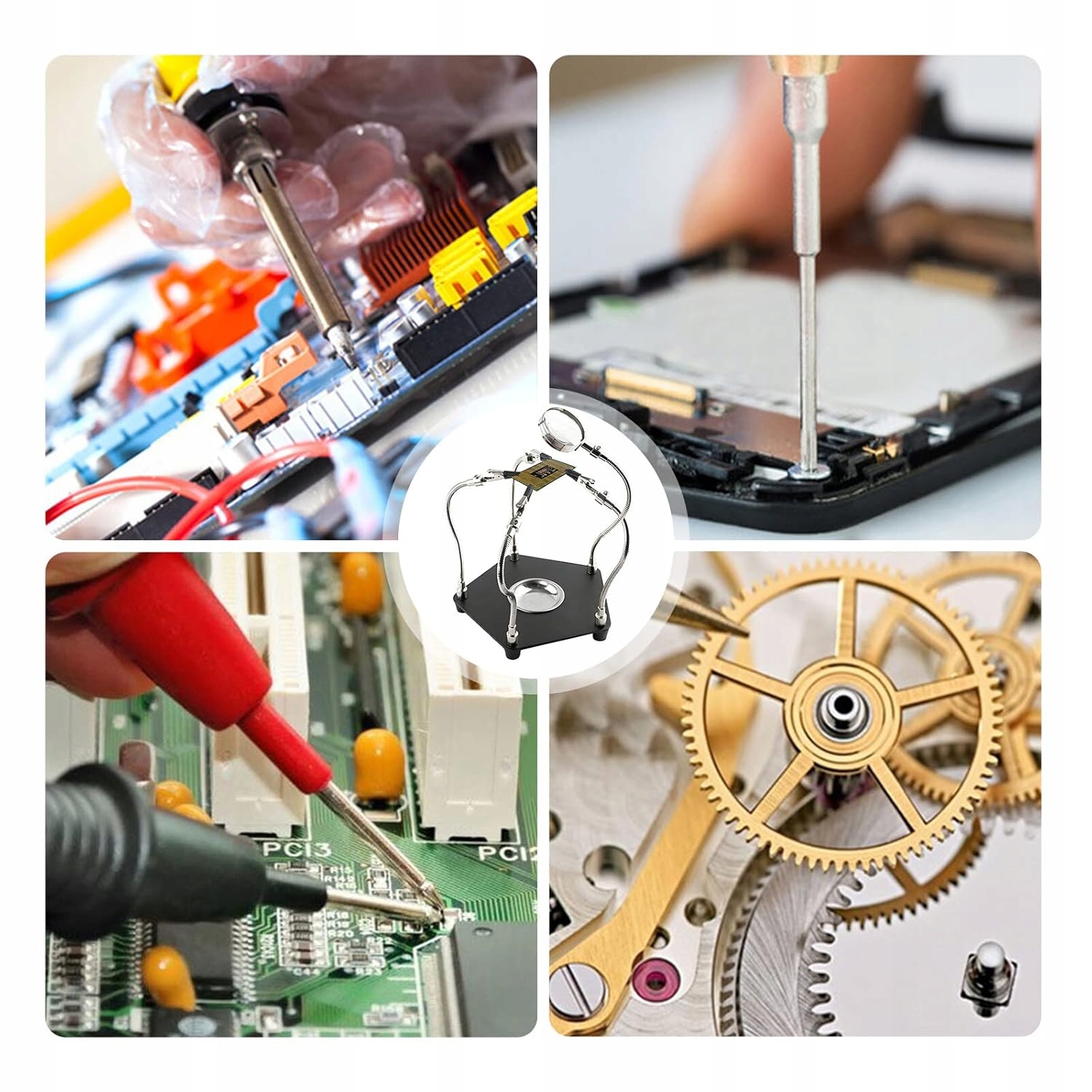 Зварювання сторонніми руками підходить для будь-якої роботи з електронікою, паяння, рукоділля, живопису, скульптури та роботи хобі, а також будь-яких прецизійних проектів, які вимагають надзвичайної точності.