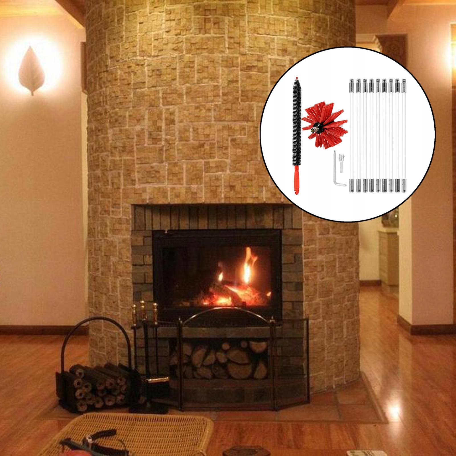 Очищувач із 9 стрижнів, щітка з гнучким дротом, використовується з повітропроводами та пелетами, може використовуватися, чудово працює з металевими димоходами та цегляними димоходами різного діаметру та форми.