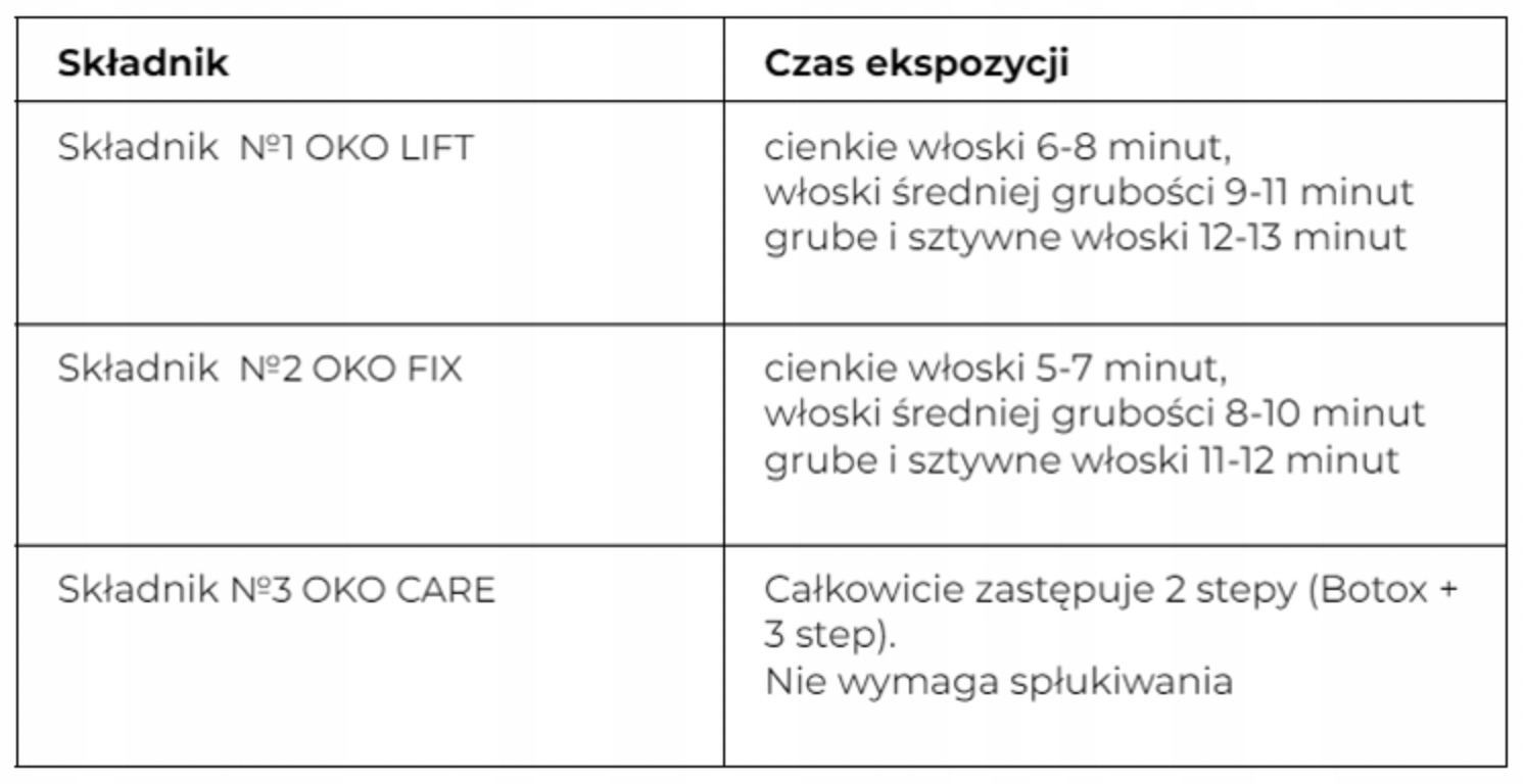 OKO КРОК 1 LIFT - це перший етап ламінування вій або довготривалої укладки брів. Засіб має лужне середовище і відповідає за руйнування дисульфідних зв'язків. Продукт розслаблює структуру волосся, дозволяючи активним інгредієнтам легко проникати всередину.