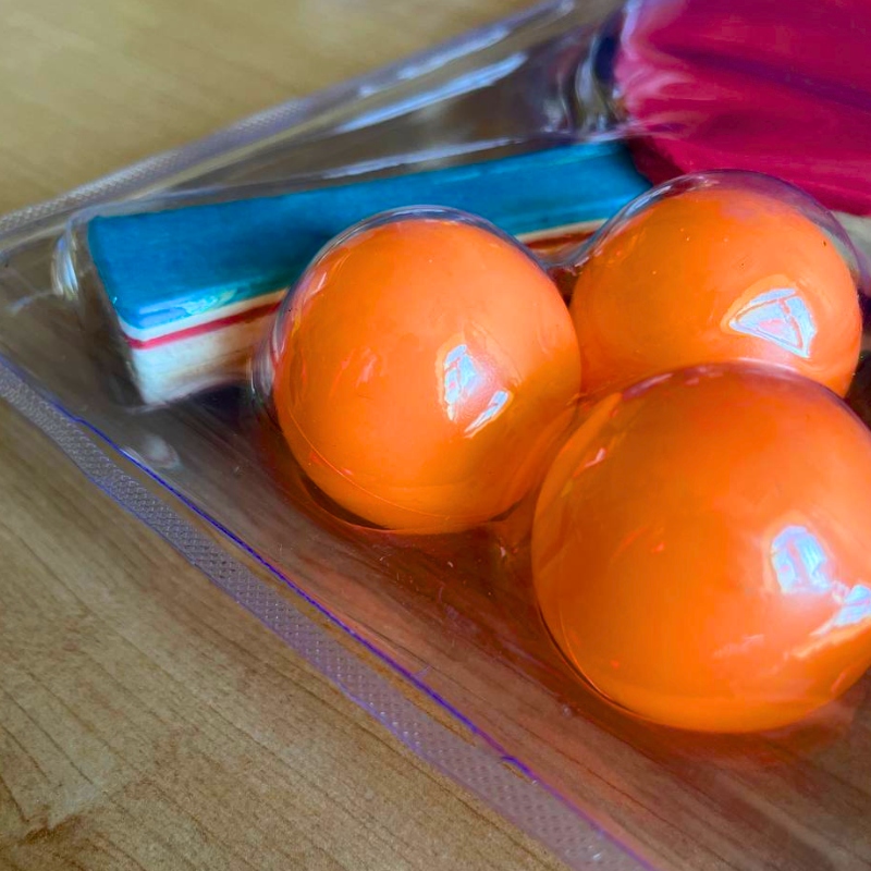 Наш набір складається з двох гребків двосторонньої конструкції, виготовлених із міцної фанери, та трьох м’ячів , що забезпечує ідеальний початок гри в настільний теніс.