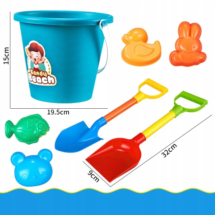 НАБІР ПЛЯЖНОГО ПІСКУ - ВІДРО, ФОРМИ ТА ТЕНИ - 7 ЕЛЕМЕНТІВ 🏖️