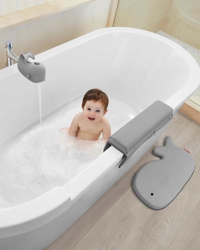 Купати дитину легко з нашим зручним набором для купання. Набір із чотирьох частин, що складається з чотирьох популярних аксесуарів для ванни Moby у приємному для ока сірому кольорі, включає кухоль, кришку змішувача, м’який налокітник і коліно. Тепер батьки можуть відчувати себе комфортно, як і їхні малюки, купаючись у ванні. Набір для ванни Moby – ідеальний подарунок для молодих батьків!