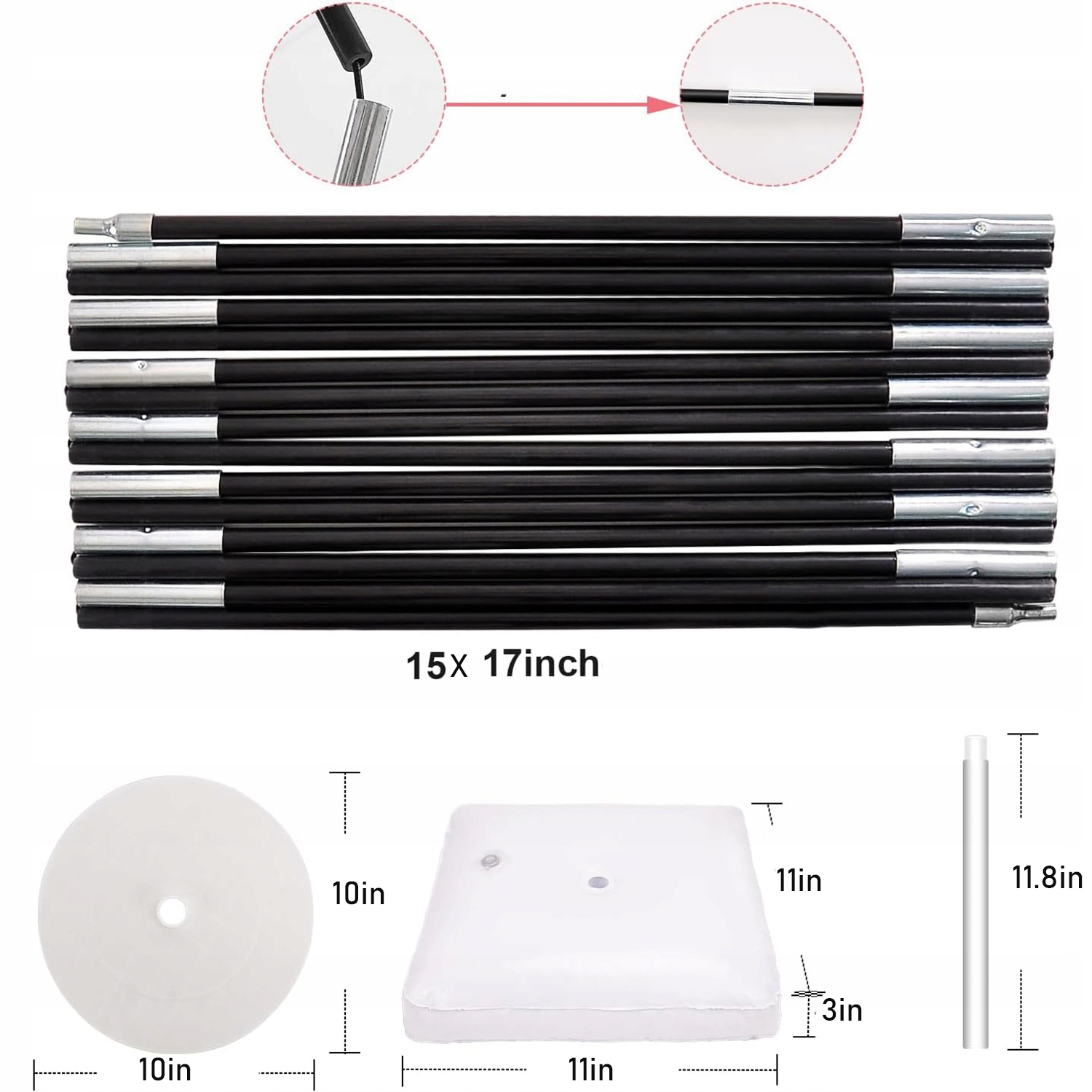 - Хороша весільна арка зі стабільною основою та мішком для води, міцна ПВХ труба гарантує, що арка з повітряної кулі залишається стабільною та не хитається багато під час впливу вітру або зіткнення з предметами. -Весільна арка з повітряної кулі - складний невід'ємний аксесуар. Одна довжина — це 17-дюймовий чорний високоміцний стрижень зі скловолокна, згинання якого нелегко зламати.