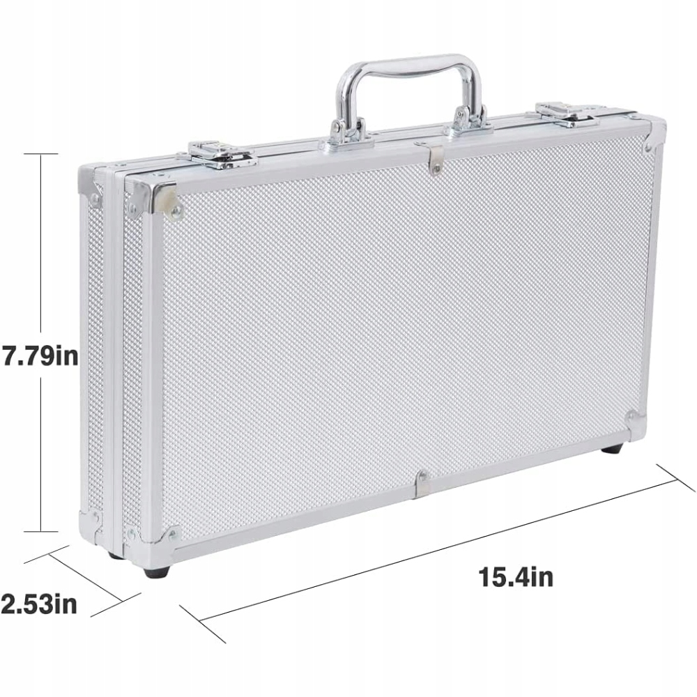 Покерний набір упакований у дуже міцну алюмінієву валізу, оснащену двома застібками, тож немає необхідності щоразу замикати його.