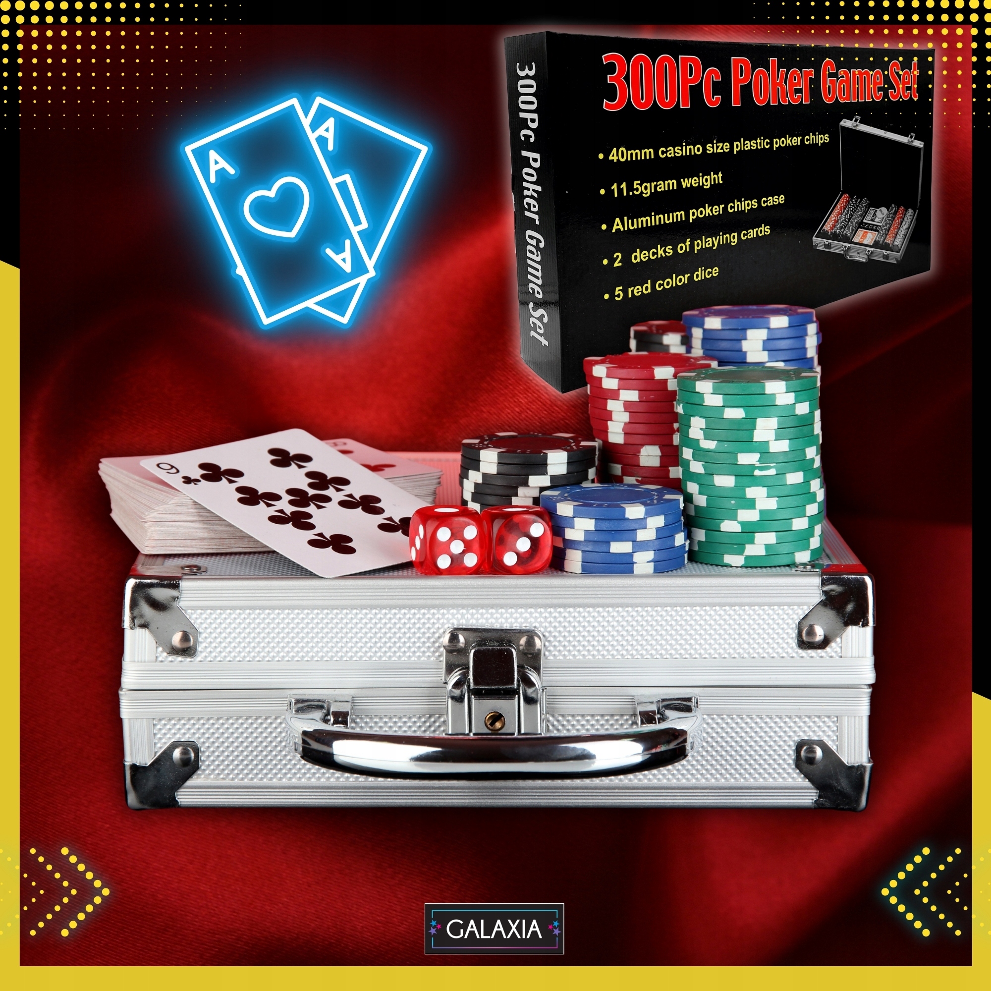 Професійний покер -набір Galaxia® - 300 жетонів, 2 колоди карт, елегантна алюмінієва валізна, 5 червоних кісток