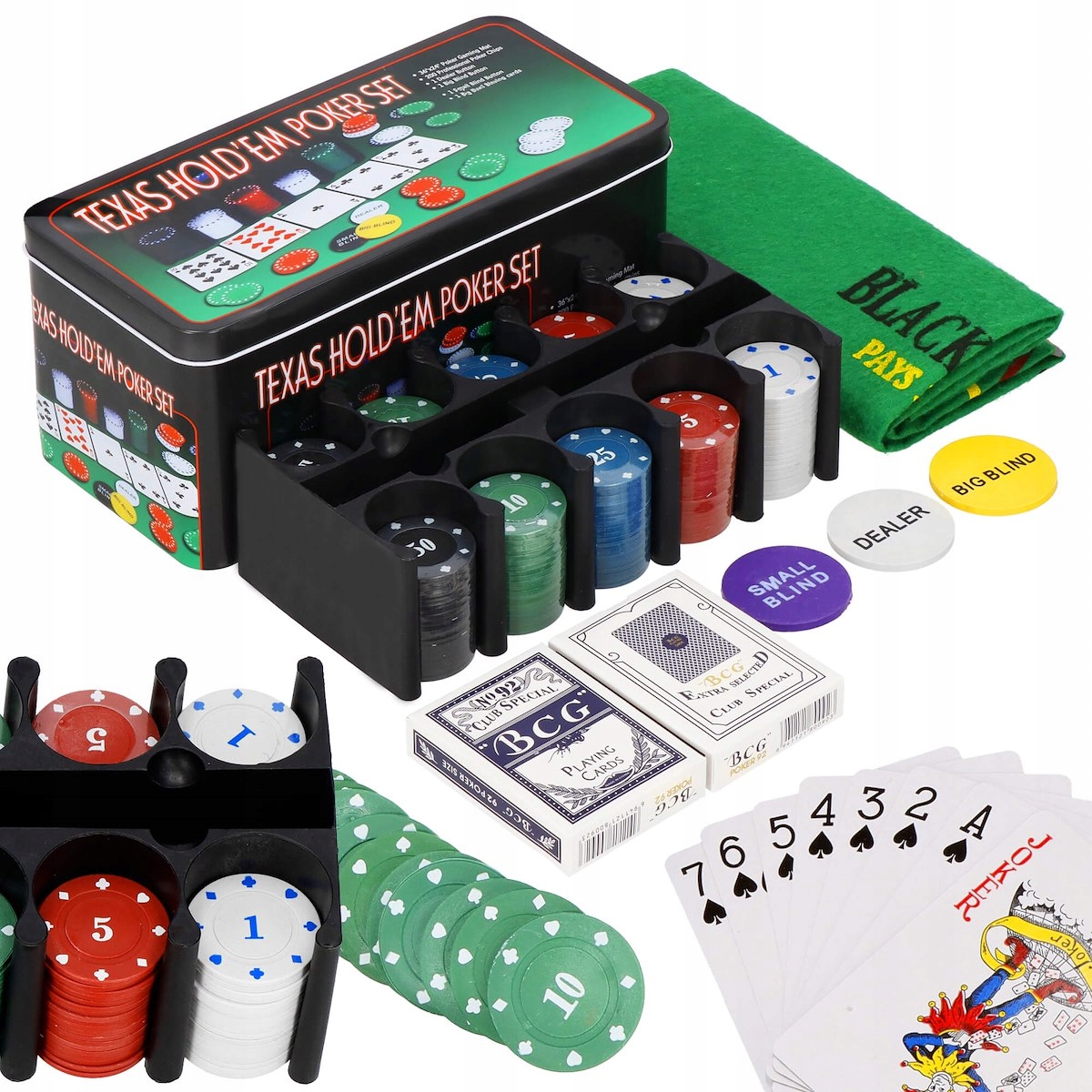 TEXAS POKER SET TOKENS 200PCS MAT CARDS