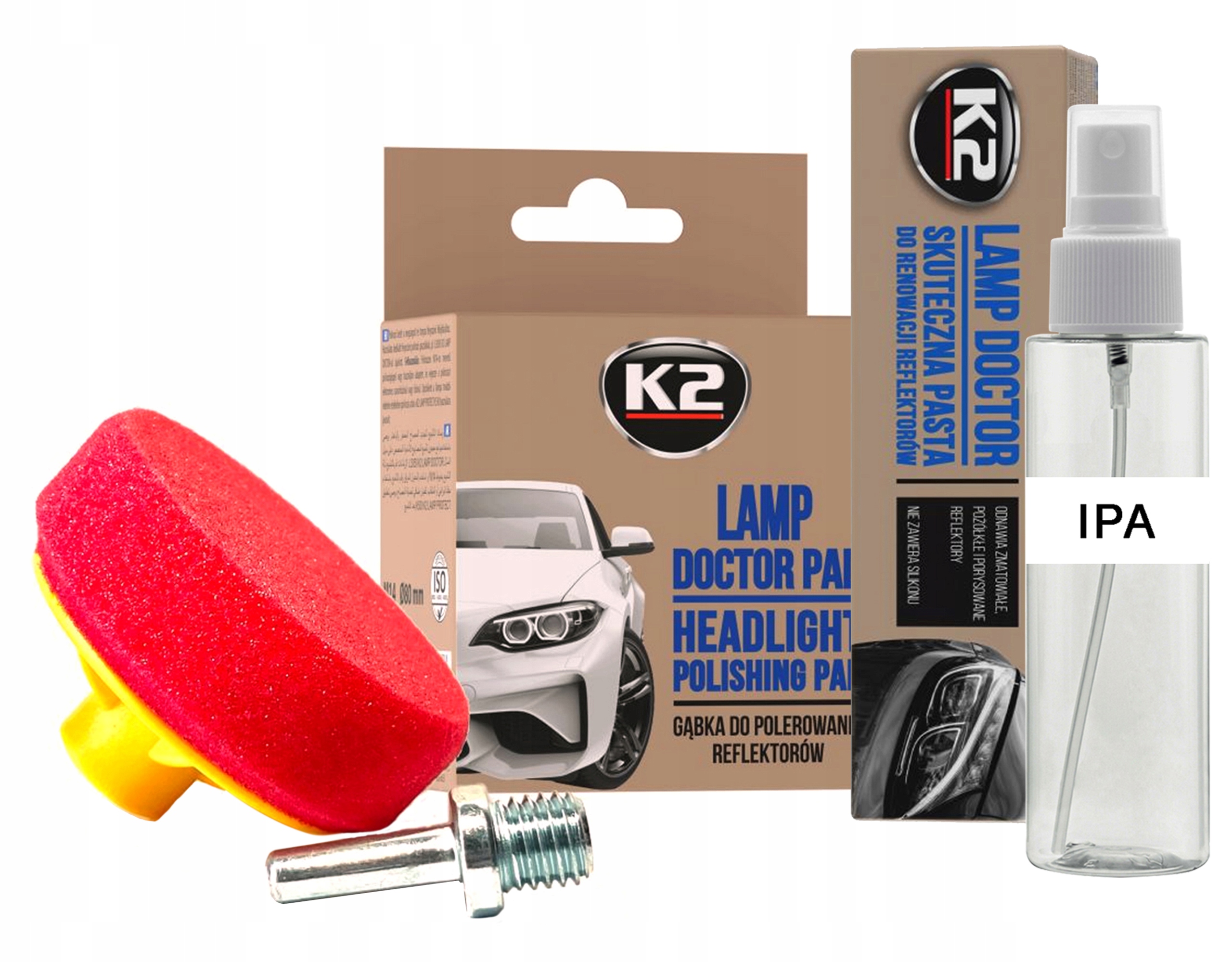K2 LAMP DOCTOR PAD K533 - полірувальна губка для регенерації пожовклих і тьмяних фар. Рекомендується для використання зі спеціальними пастами для полірування фар, наприклад K2 Lamp Doctor [L3050]. Розмір 80 мм дозволяє дістатися до важкодоступних місць, навіть якщо рефлектори складної форми відполірувати їх не проблема. Оптимально підібрана твердість і структура полірувальної губки забезпечує високу ефективність роботи і ефективне використання полірувального засобу, що призводить до фантастичного кінцевого ефекту. K2 Lamp Doctor Pad має різьблення M14 і перехідник, що входить в комплект, тому полірувальна машинка для використання не потрібна. Його з успіхом можна використовувати як губку для полірування ламп дрилем або викруткою.