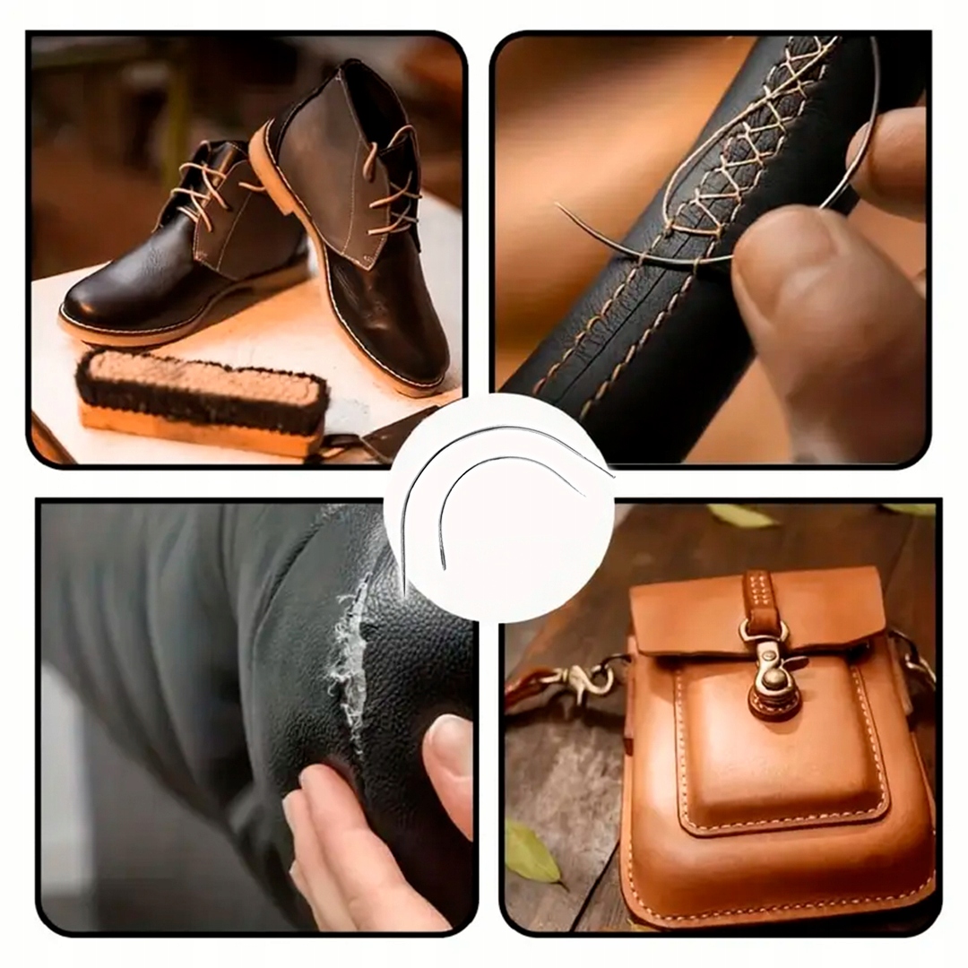Повний набір із 32 елементів містить усі необхідні інструменти для ремонту сидінь, диванів, пальто, сумки, килими, намети та шкіряне взуття. Завдяки різним видам голок, мотузок і шил ви можете зробити надійні та естетичні шви навіть на товстій шкірі чи твердому матеріалі.