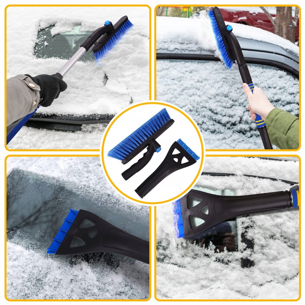 - Щітка для снігу зі скребком для льоду підходить для всіх типів транспортних засобів, а також може знімати сніг з дверей і вікон.