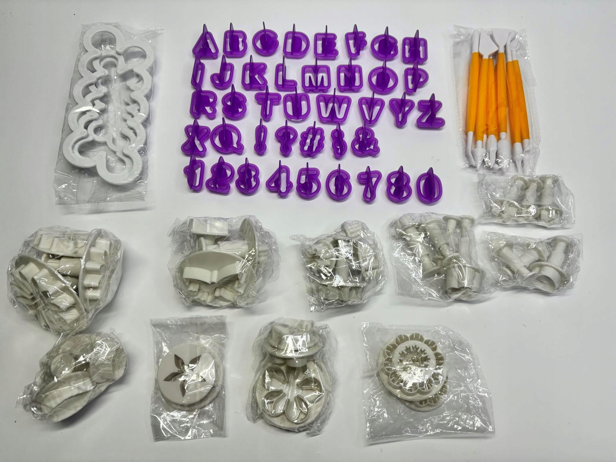 Набір для прикраси торта, формочки для букв, цифр, печива, 83 елемента